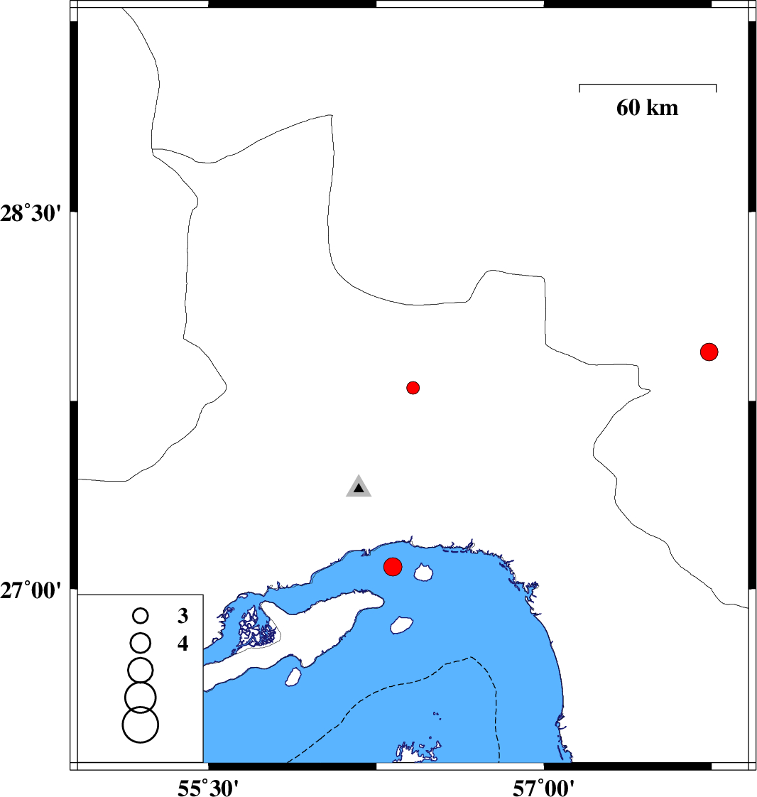 2018/02/19 02:24:25.5 05:54:25.5 27.08956.32411 ML3.6 Persian Gulf, 11 km of Bandar-e abbas