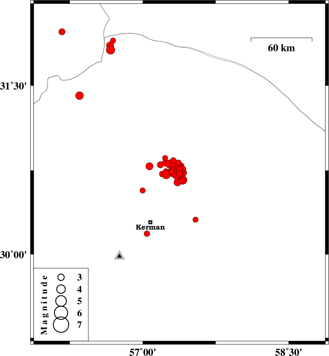 | 2018/02/01 | 15:19:24.2 | 18:49:24.2 | 30.571 | 56.998 | 7 | ML2.5 | Kerman Province, 32 km North of Kerman | ||