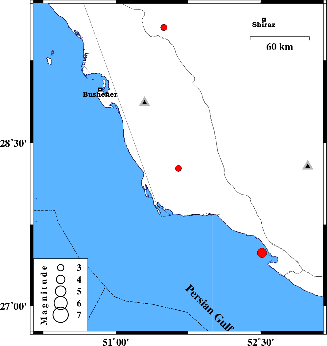| 2018/03/03 | 23:17:27.4 | 02:47:27.4 | 28.265 | 51.648 | 16 | ML2.8 | Bushehr Province, 51 km South-East of Khormog | ||