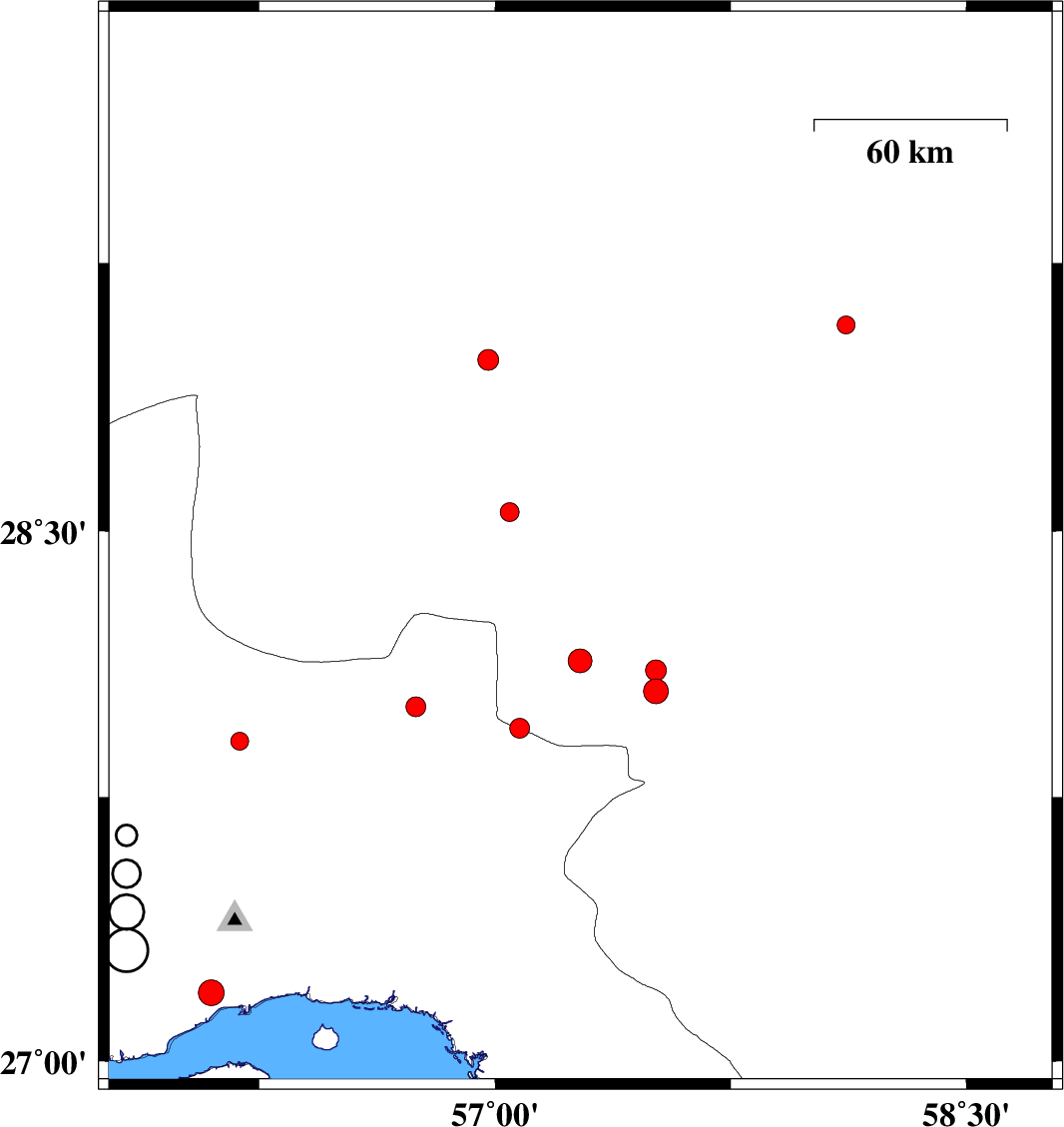 2018/02/19 | 02:24:25.5 | 05:54:25.5 | 27.089 | 56.324 | 11 | ML:3.6 | Persian Gulf, 11 km of Bandar-e abbas | ||