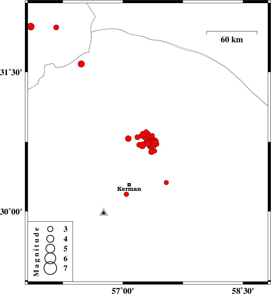 | 2018/03/04 | 11:35:27.1 | 15:05:27.1 | 30.708 | 57.38 | 14 | ML3 | Kerman Province, 55 km North-East of Kerman | ||
