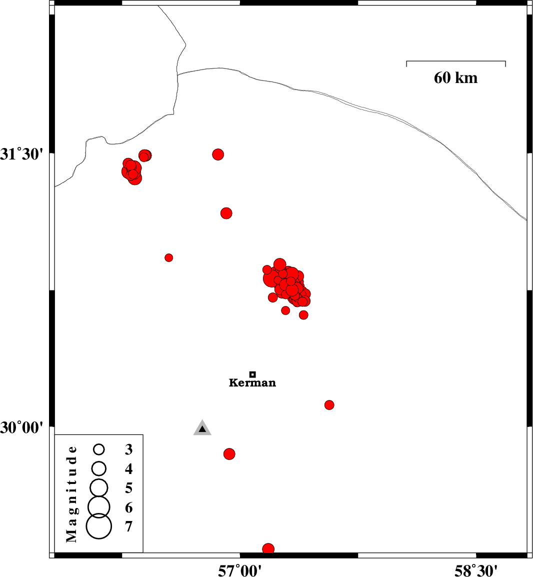 2018/01/20 04:16:03.5 07:46:03.5 30.72157.34714 ML2.7 Kerman Province, 55 km North-East of Kerman