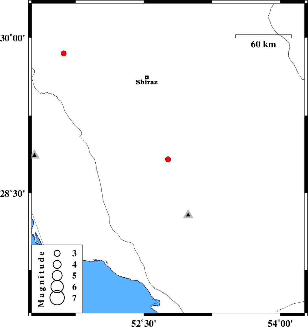 | 2018/01/29 | 07:08:42.9 | 10:38:42.9 | 28.828 | 52.766 | 14 | ML2.7 | Fars Province, 17 km -East of Firuz Abad | ||