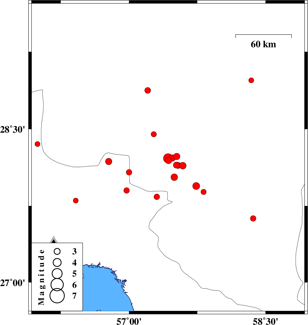 2018/03/12 07:35:33.7 11:05:33.7 28.21657.42918 ML4.6 Kerman Province, 39 km North-West of Kahnuj