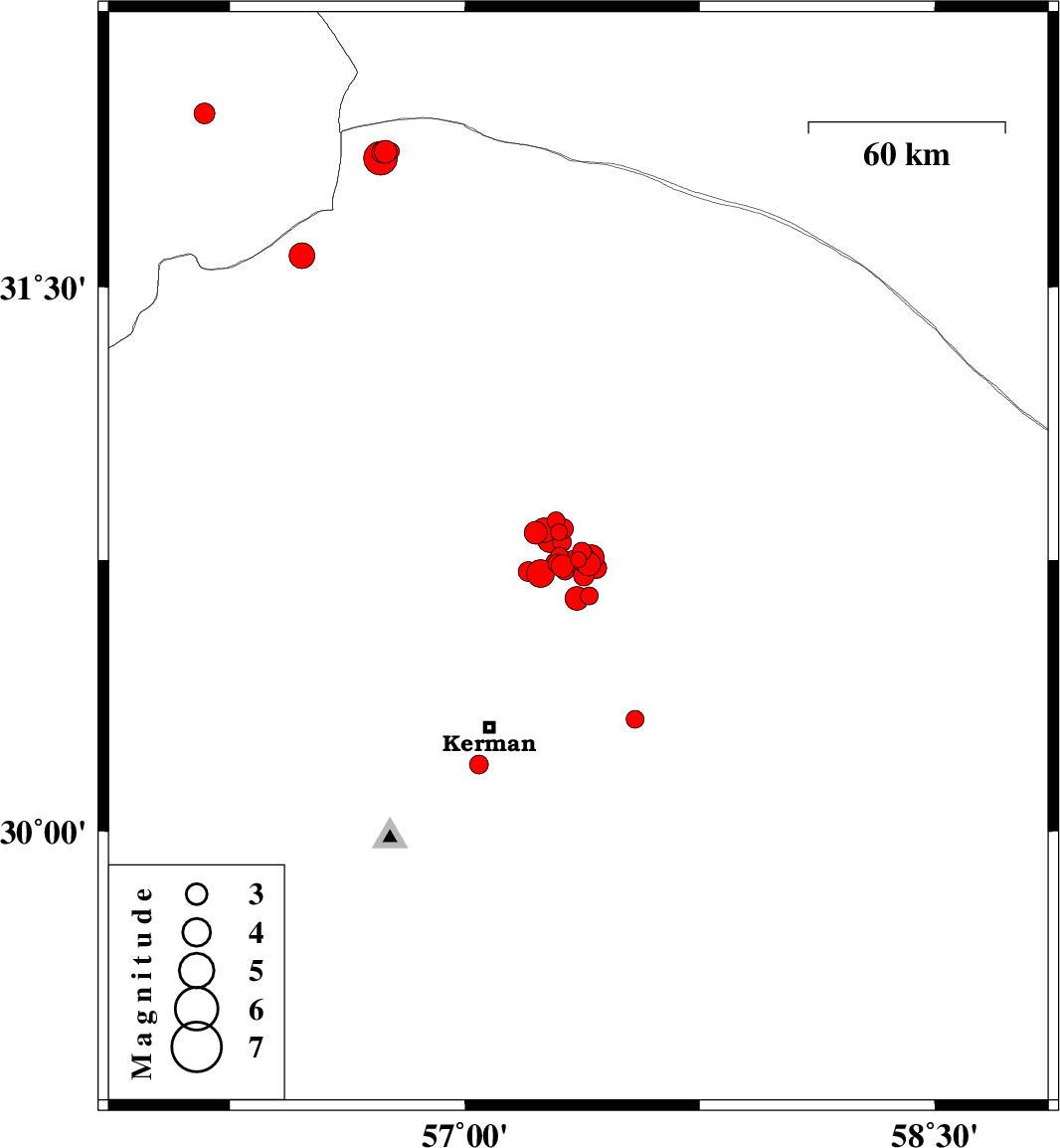 | 2018/03/04 | 11:35:27.1 | 15:05:27.1 | 30.708 | 57.38 | 14 | ML3 | Kerman Province, 55 km North-East of Kerman | ||