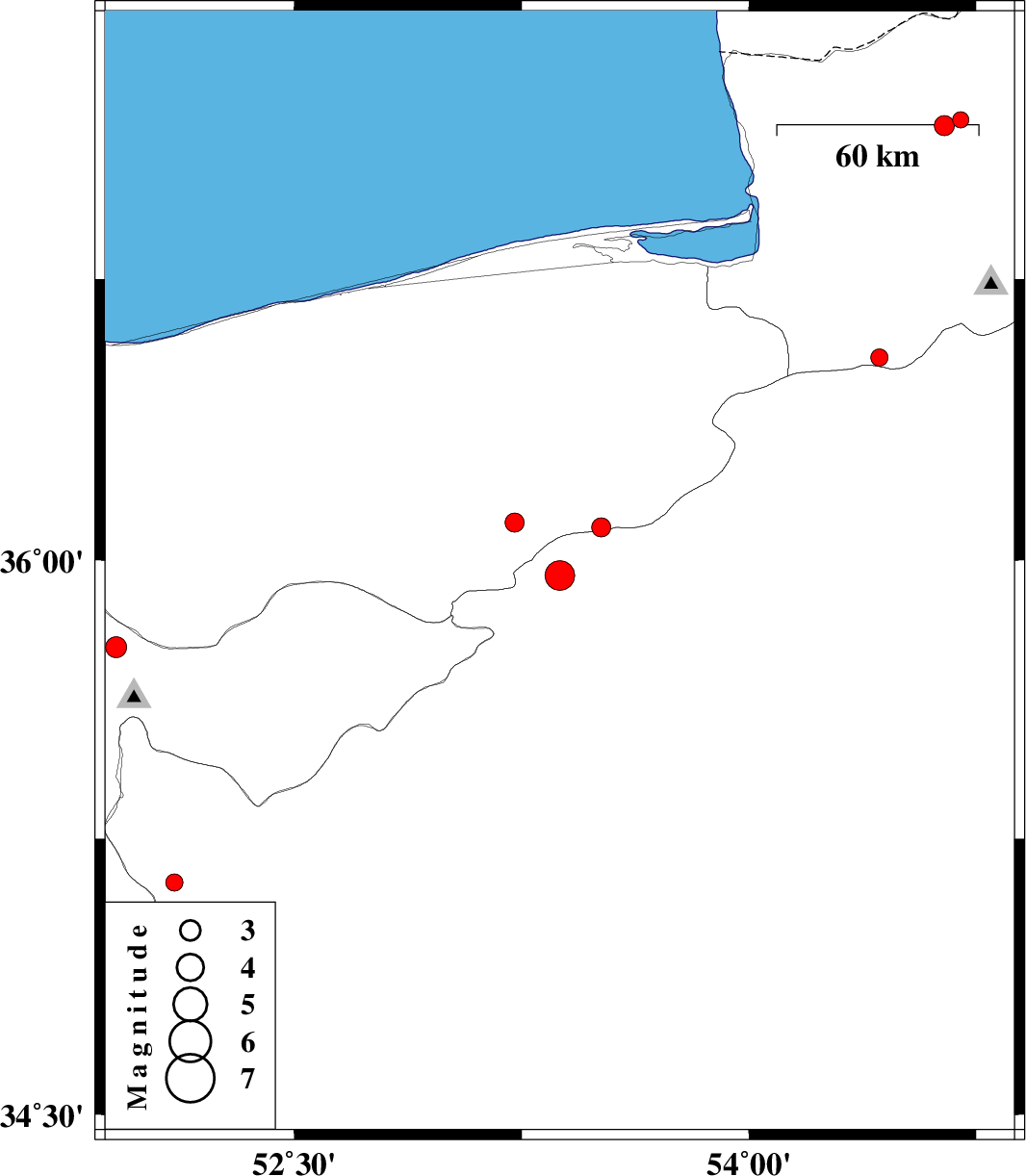 | 2018/03/20 | 02:40:22.5 | 06:10:22.5 | 35.959 | 53.376 | 15 | ML4.4 | Semnan Province, 44 km North of Semnan | ||