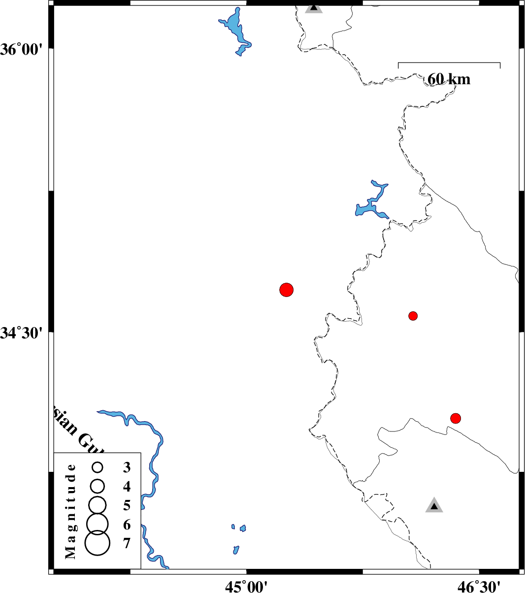 | 2018/03/16 | 15:58:49.3 | 19:28:49.3 | 34.038 | 46.348 | 14 | ML2.9 | Kermanshah Province, 24 km North of Eyvan |