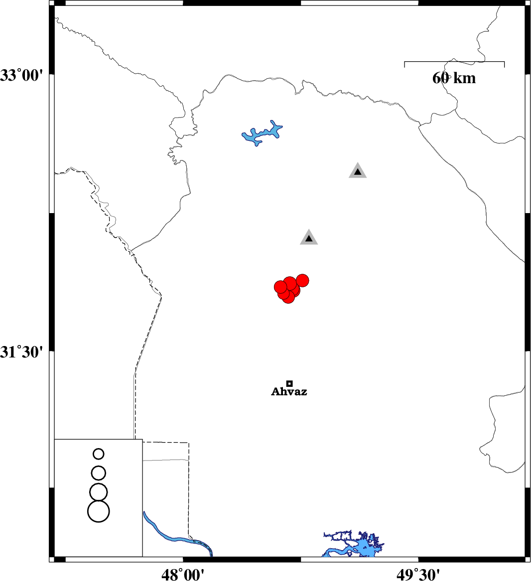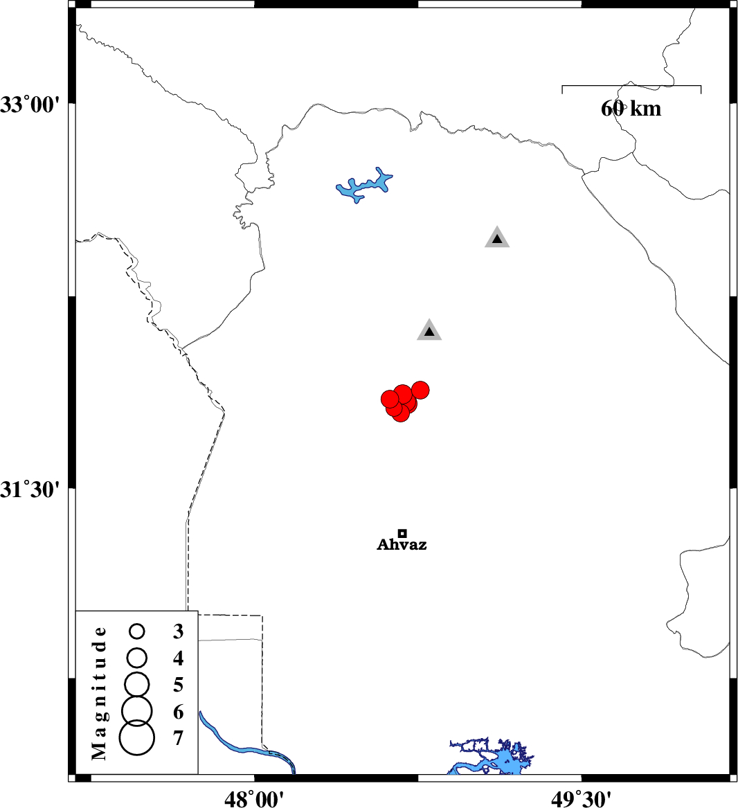 2018/03/27 23:07:52.4 03:37:52.4 31.83148.714 ML4.1 Khoozestan Province, 28 km South-West of Shushtar