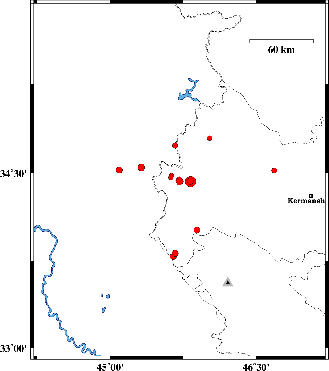 | 2018/04/01 | 11:55:23.4 | 16:25:23.4 | 34.451 | 45.71 | 17 | ML2.1 | Kermanshah Province, 14 km -East of Qasr-E-Shirin | ||