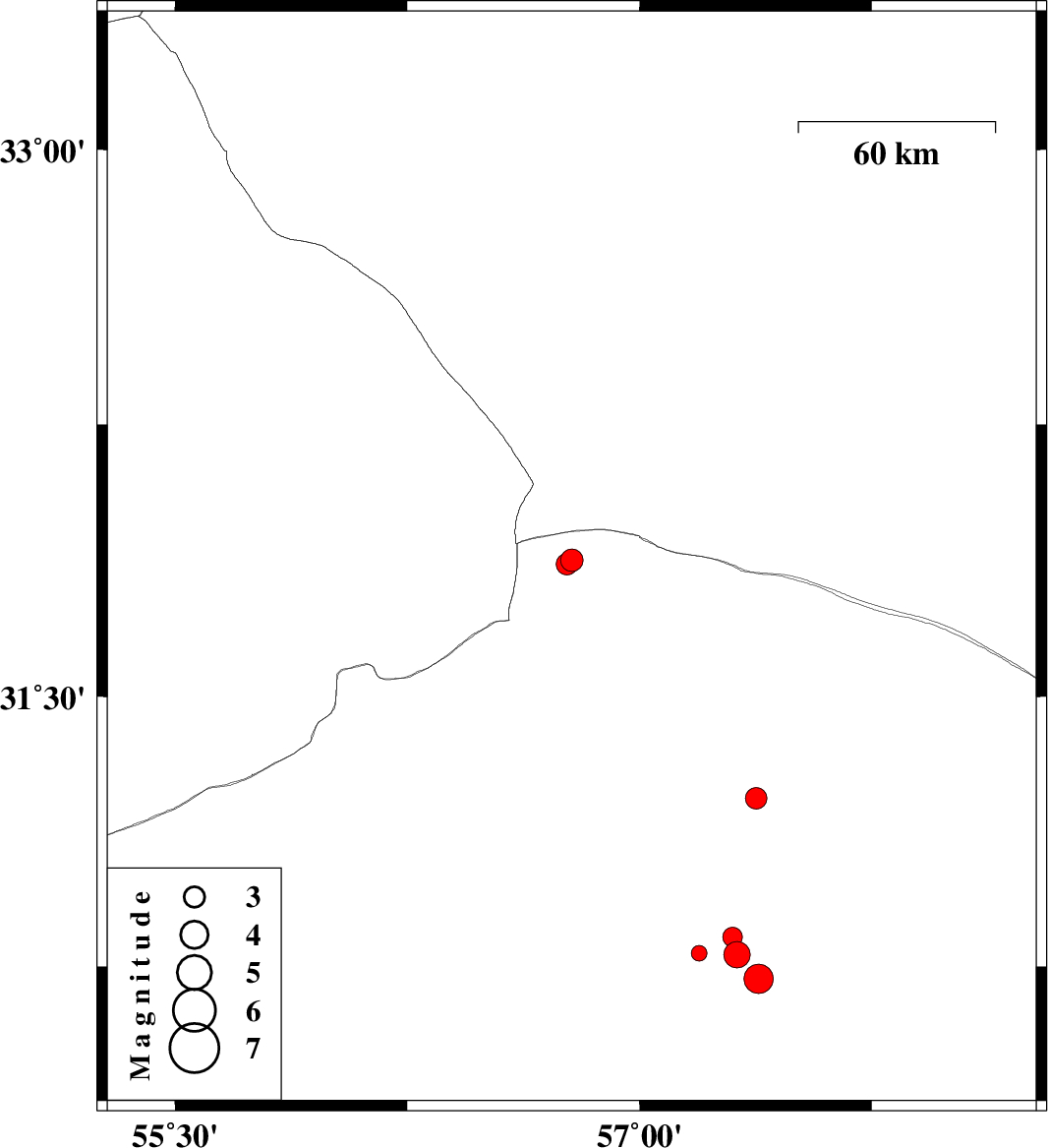 | 2018/03/30 | 12:45:14.3 | 17:15:14.3 | 30.717 | 57.384 | 15 | ML4.2 | Kerman Province, 56 km North-East of Kerman | ||