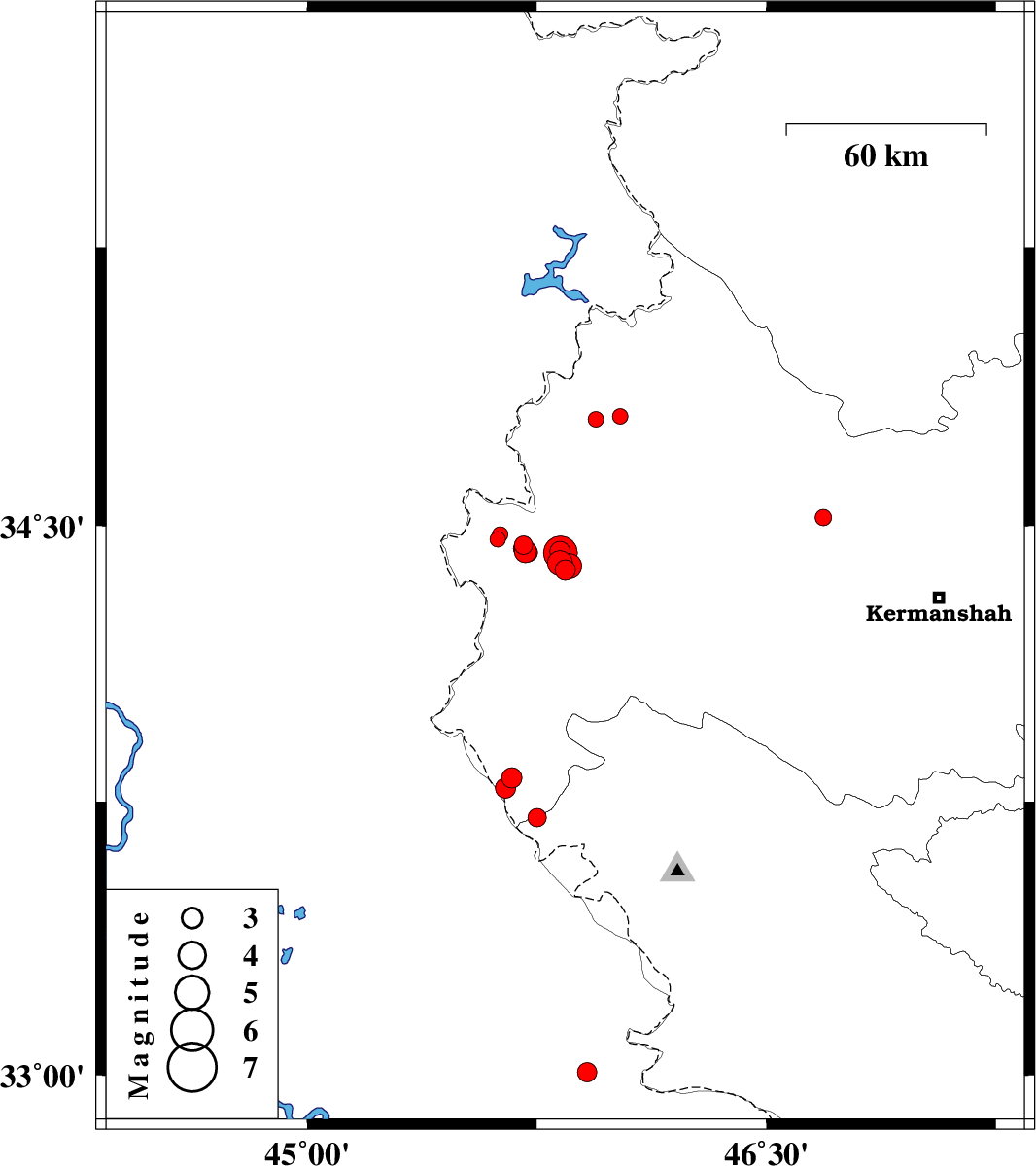 | 2018/04/06 | 17:27:23.9 | 21:57:23.9 | 34.38 | 45.843 | 15 | ML3 | Kermanshah Province, 10 km of Sar-e pol-e zahab | ||