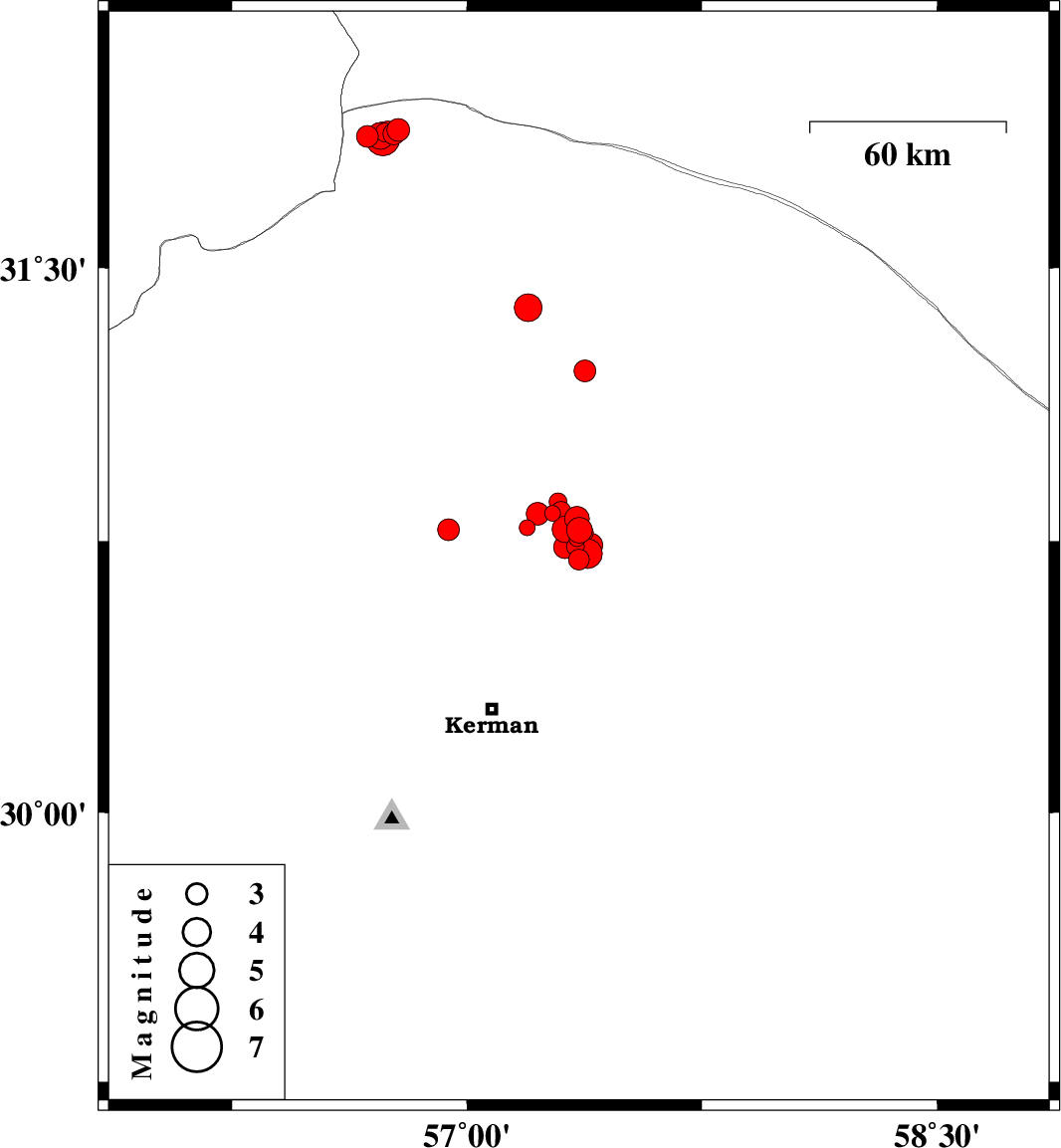| 2018/04/04 | 22:12:39.1 | 02:42:39.1 | 30.7 | 57.357 | 14 | ML3 | Kerman Province, 53 km North-East of Kerman | ||