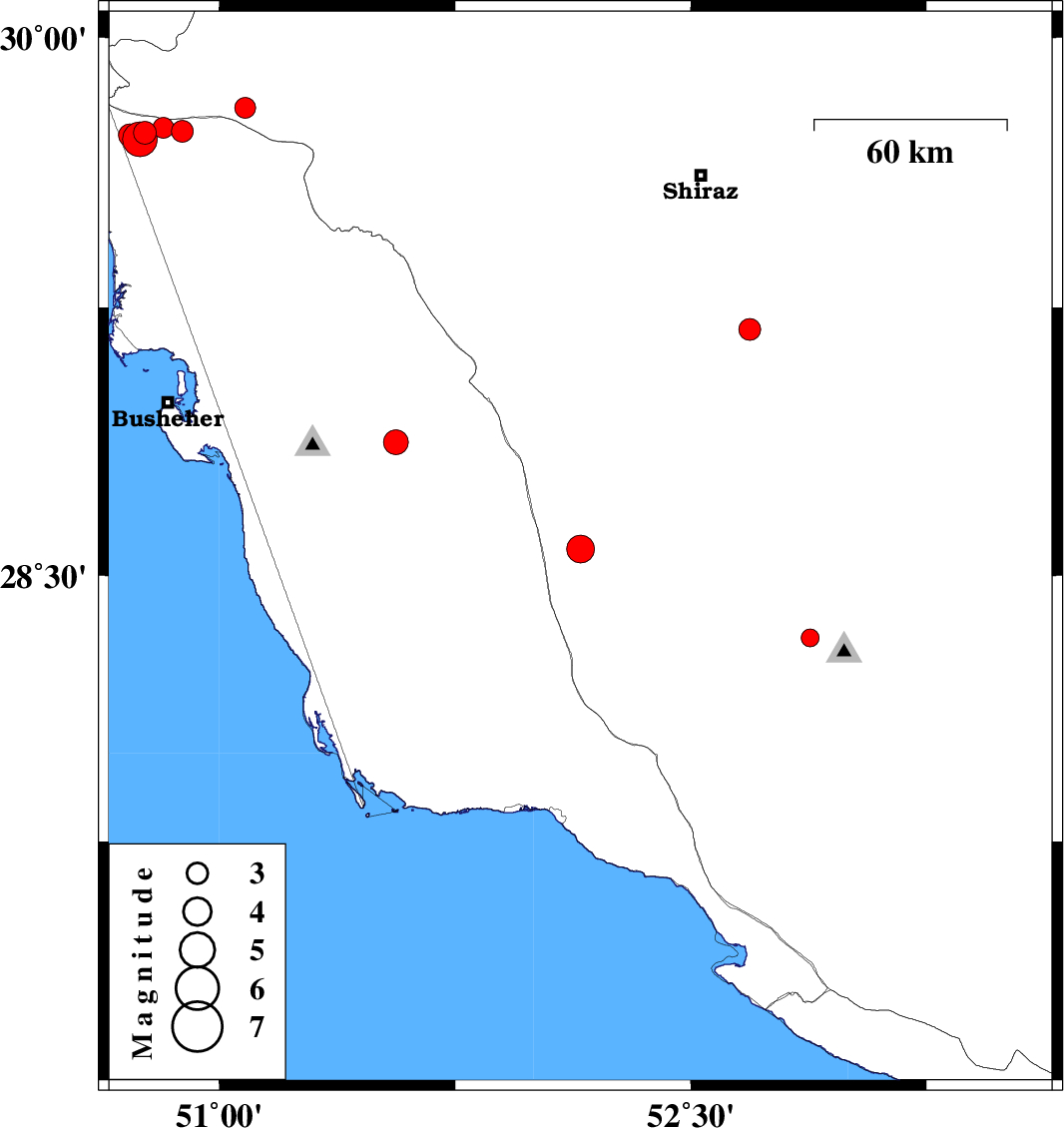 | 2018/03/19 | 06:09:52.0 | 09:39:52.0 | 29.736 | 50.764 | 6 | ML3.2 | Bushehr Province, 30 km North-East of Bandar-e genaveh | ||