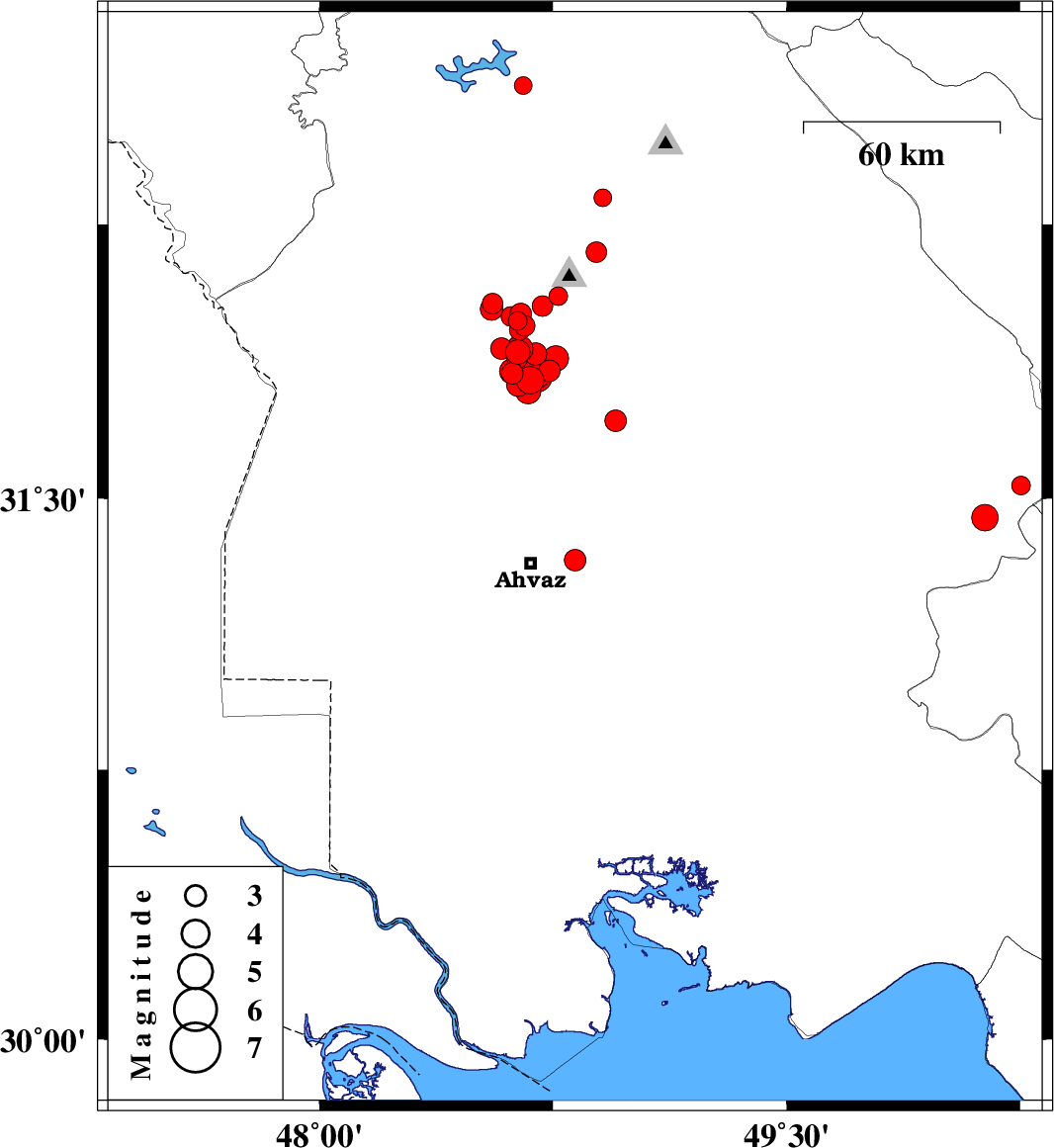 | 2018/04/02 | 02:11:40.3 | 06:41:40.3 | 31.911 | 48.584 | 15 | ML3.1 | Khoozestan Province, 29 km South-West of Shushtar | ||