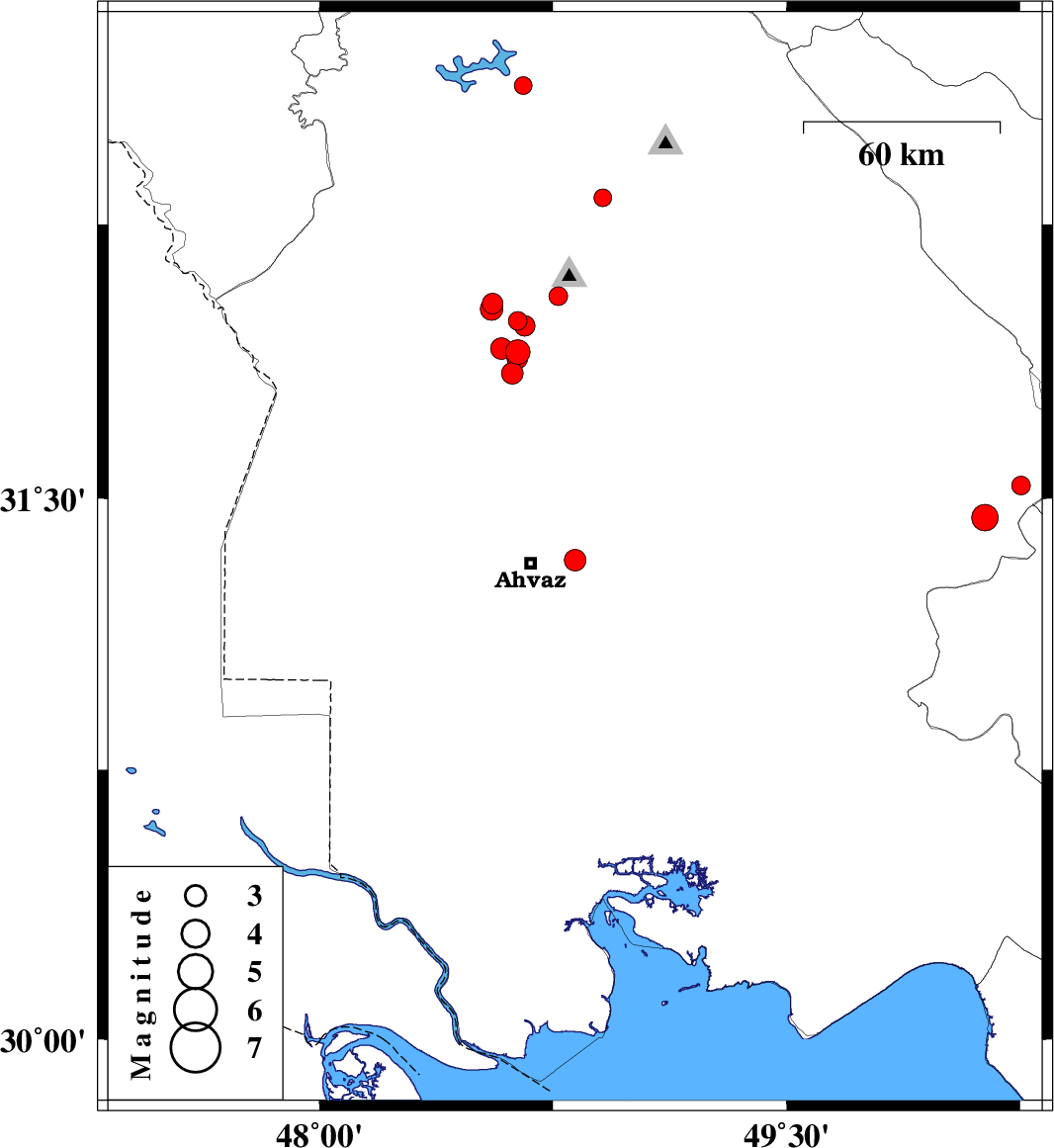 | 2018/04/02 | 02:11:40.3 | 06:41:40.3 | 31.911 | 48.584 | 15 | ML3.1 | Khoozestan Province, 29 km South-West of Shushtar | ||
