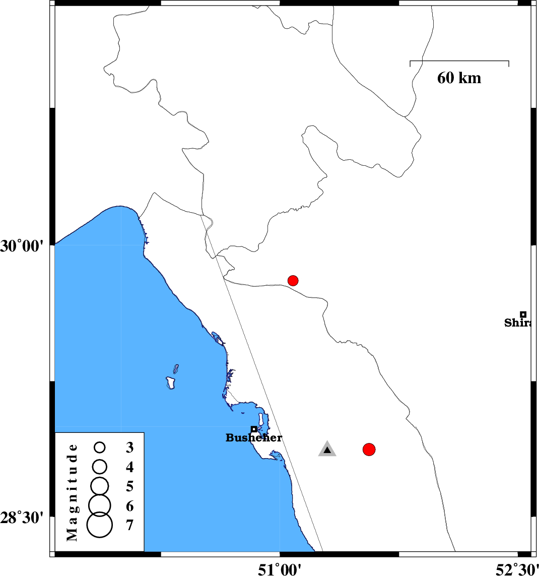 | 2018/04/04 | 12:26:49.9 | 16:56:49.9 | 29.805 | 51.082 | 18 | ML2.9 | Fars Province, 62 km North-West of Borazjan | ||