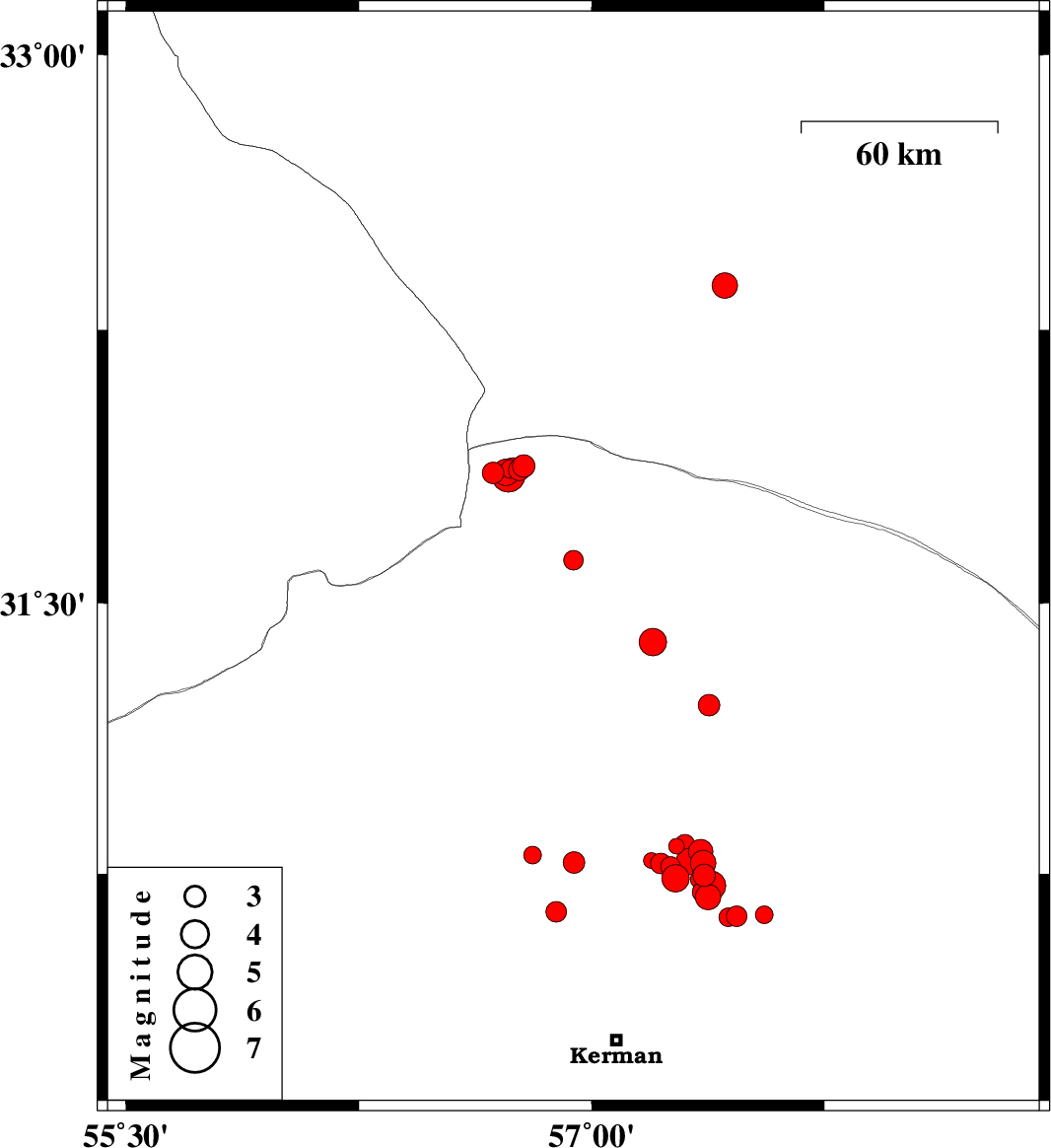 | 2018/04/09 | 07:42:53.0 | 12:12:53.0 | 30.746 | 57.362 | 14 | ML3.3 | Kerman Province, 58 km North-East of Kerman | ||