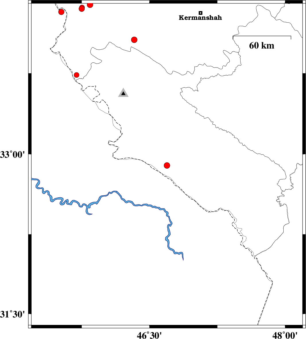 | 2018/04/13 | 19:55:06.3 | 00:25:06.3 | 34.344 | 45.75 | 15 | ML2.8 | Kermanshah Province, 18 km South-West of Sar-e pol-e zahab | ||