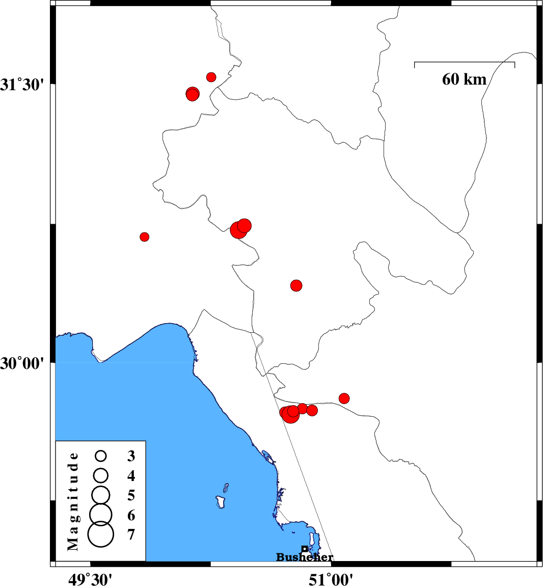 | 2018/03/19 | 06:09:52.0 | 09:39:52.0 | 29.736 | 50.764 | 6 | ML3.2 | Bushehr Province, 30 km North-East of Bandar-e genaveh | ||