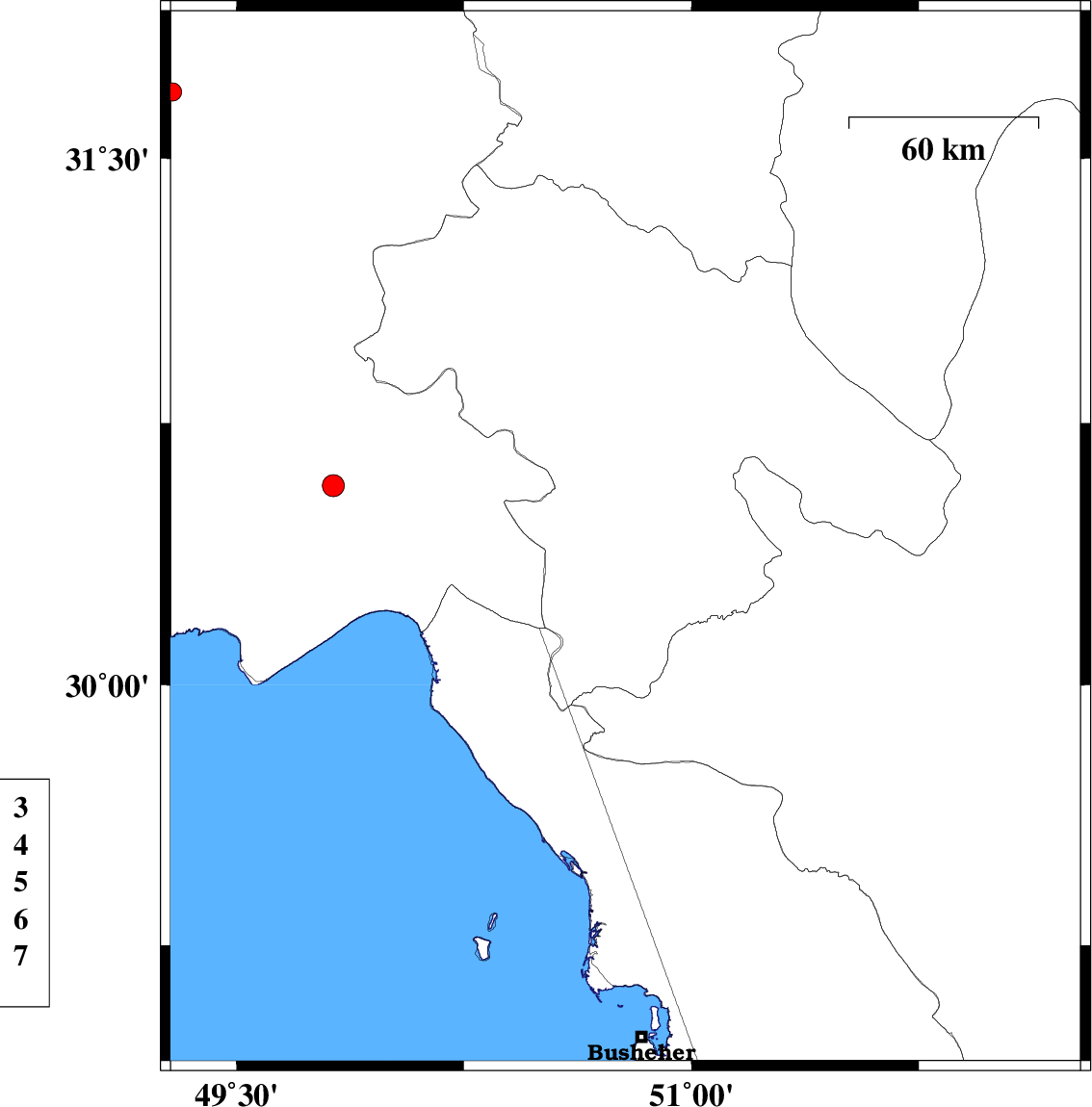 | 2018/04/09 | 21:29:01.7 | 01:59:01.7 | 31.441 | 50.136 | 15 | ML3.4 | Khoozestan Province, 24 km -East of Bagh Malek | ||