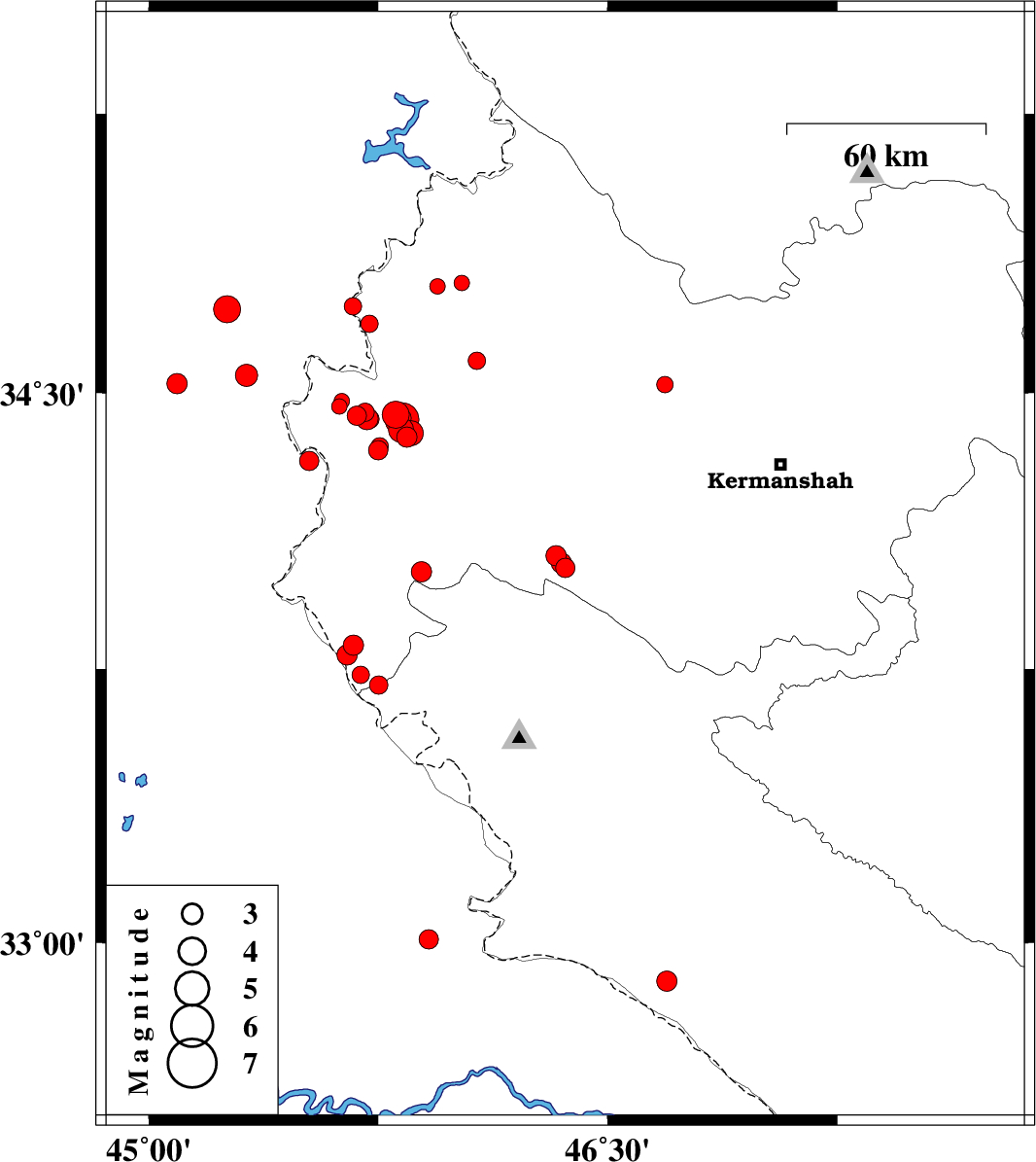 | 2018/03/16 | 15:58:49.3 | 19:28:49.3 | 34.038 | 46.348 | 14 | ML2.9 | Kermanshah Province, 24 km North of Eyvan |