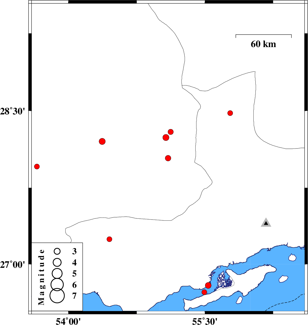 | 2018/04/03 | 22:06:48.2 | 02:36:48.2 | 26.724 | 55.493 | 9 | ML2.6 | Persian Gulf, 68 km North-East of Bandar-e lengeh | ||