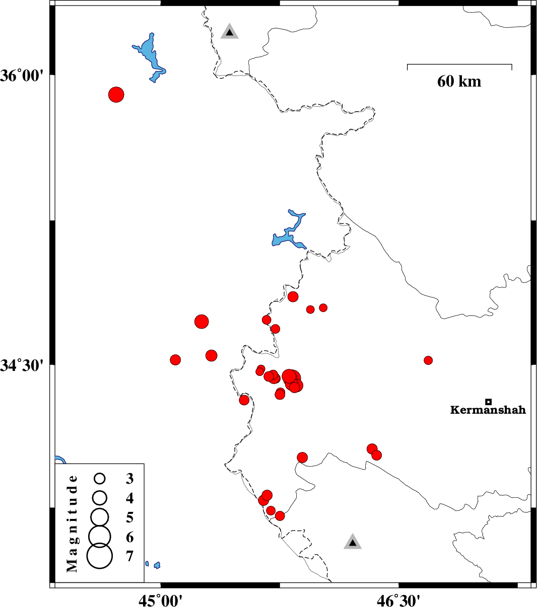 | 2018/04/06 | 17:27:23.9 | 21:57:23.9 | 34.38 | 45.843 | 15 | ML3 | Kermanshah Province, 10 km of Sar-e pol-e zahab | ||