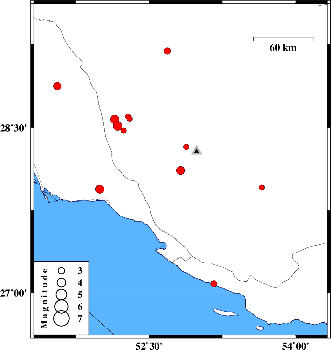| 2018/04/09 | 03:23:12.7 | 07:53:12.7 | 27.943 | 51.996 | 10 | ML3.9 | Bushehr Province, 14 km North of Bandar-e kangan | ||