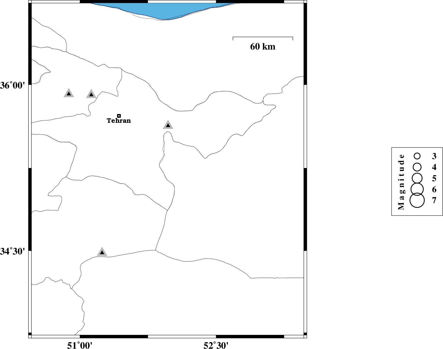 2018/04/01 | 18:26:23.0 | 22:56:23.0 | 35.528 | 52.369 | 15 | ML:4.1 | Tehran Province, 35 km North of Garmsar | ||