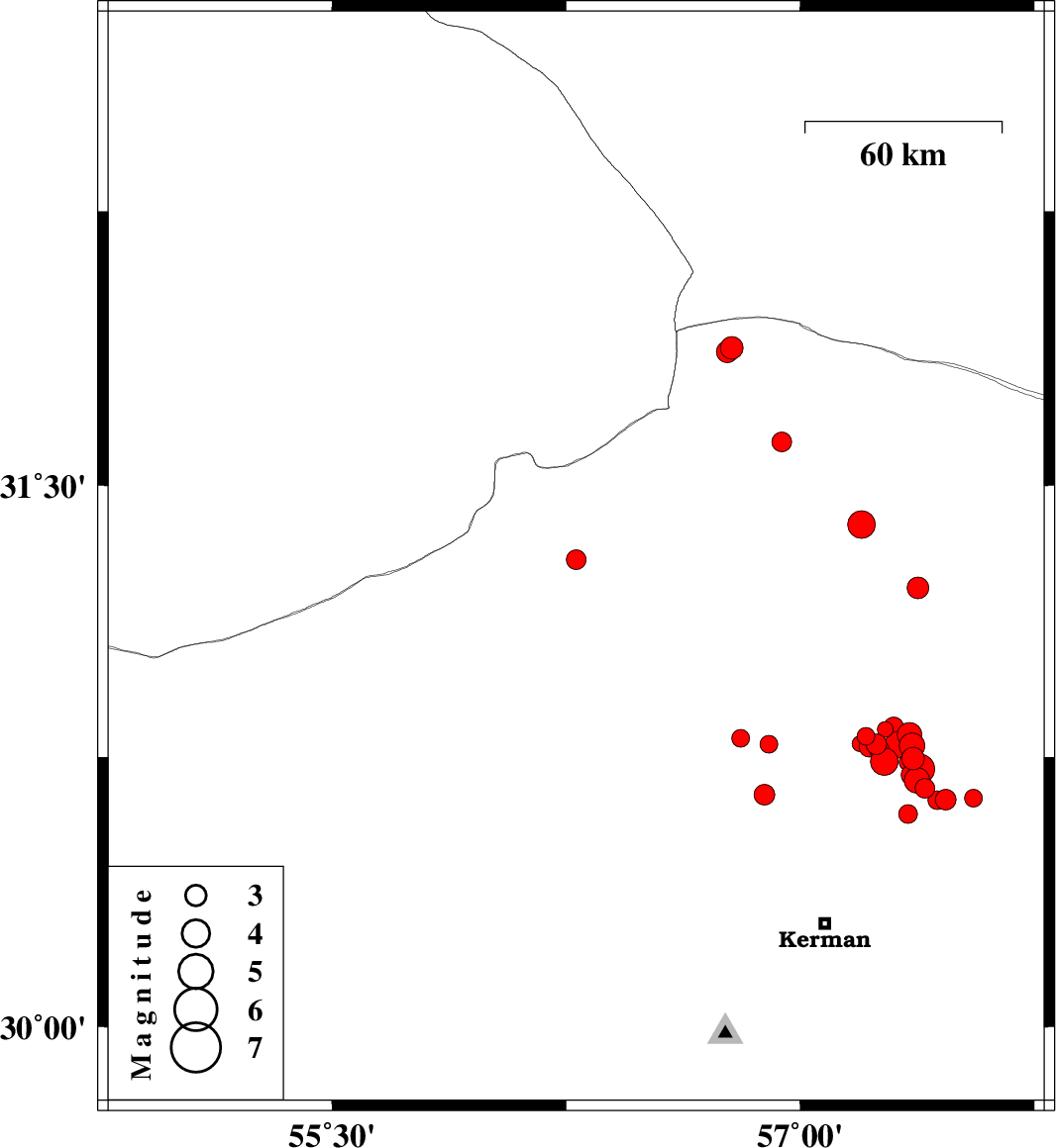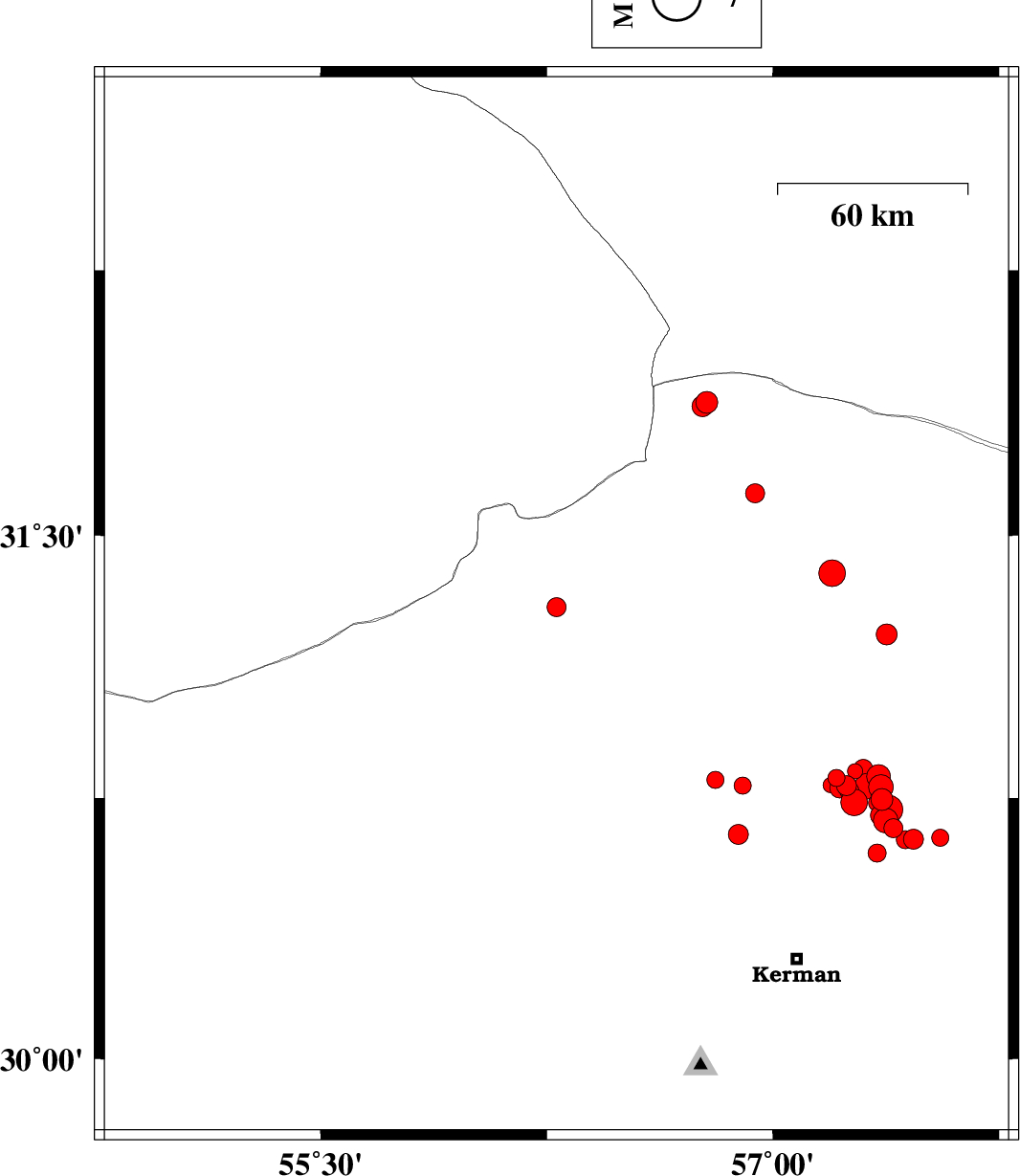 | 2018/04/04 | 22:12:39.1 | 02:42:39.1 | 30.7 | 57.357 | 14 | ML3 | Kerman Province, 53 km North-East of Kerman | ||