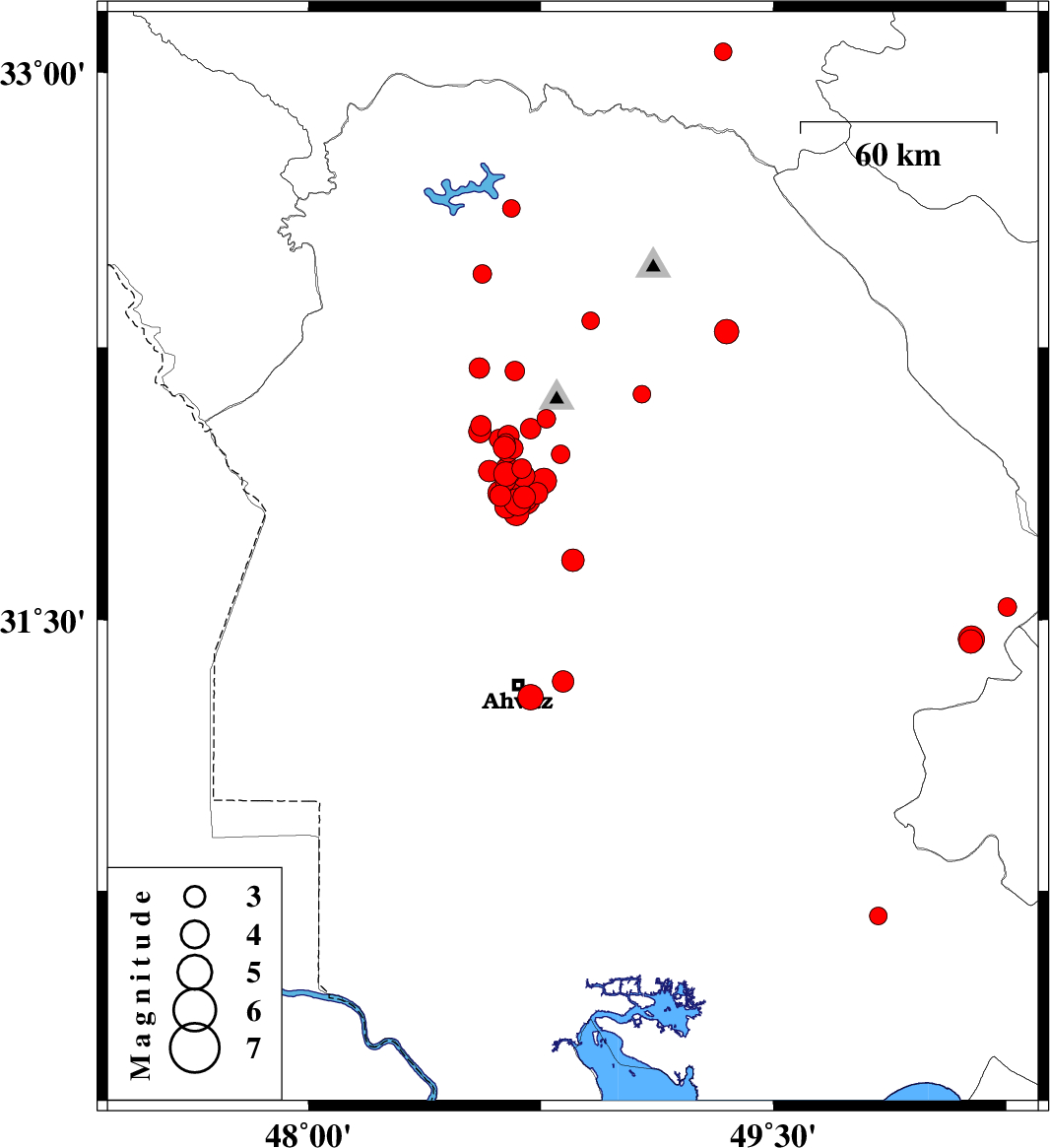 | 2018/04/02 | 02:11:40.3 | 06:41:40.3 | 31.911 | 48.584 | 15 | ML3.1 | Khoozestan Province, 29 km South-West of Shushtar | ||