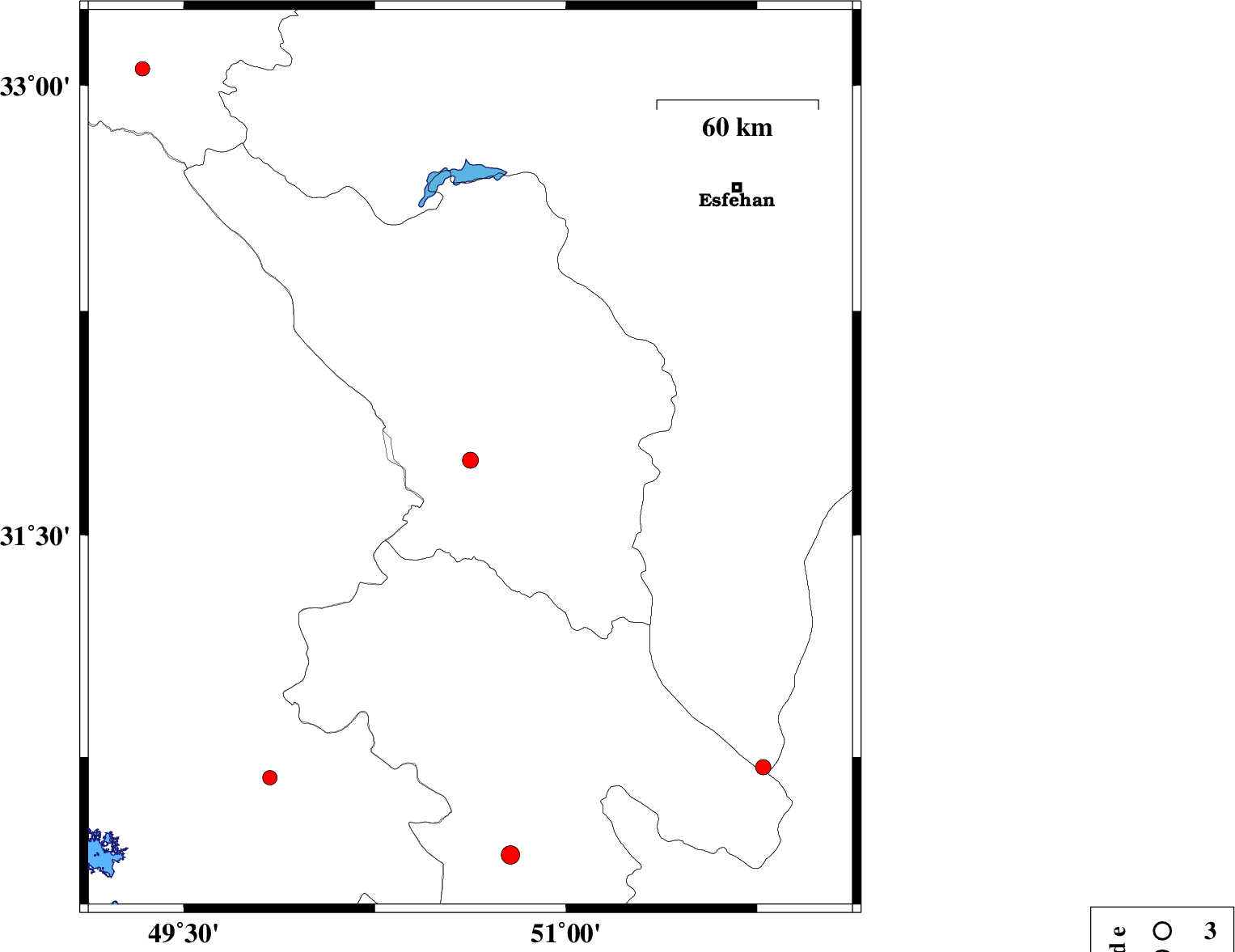 | 2018/04/17 | 20:38:46.6 | 01:08:46.6 | 30.716 | 51.774 | 15 | ML2.7 | Esfahan Province, 20 km -East of Yasuj | ||