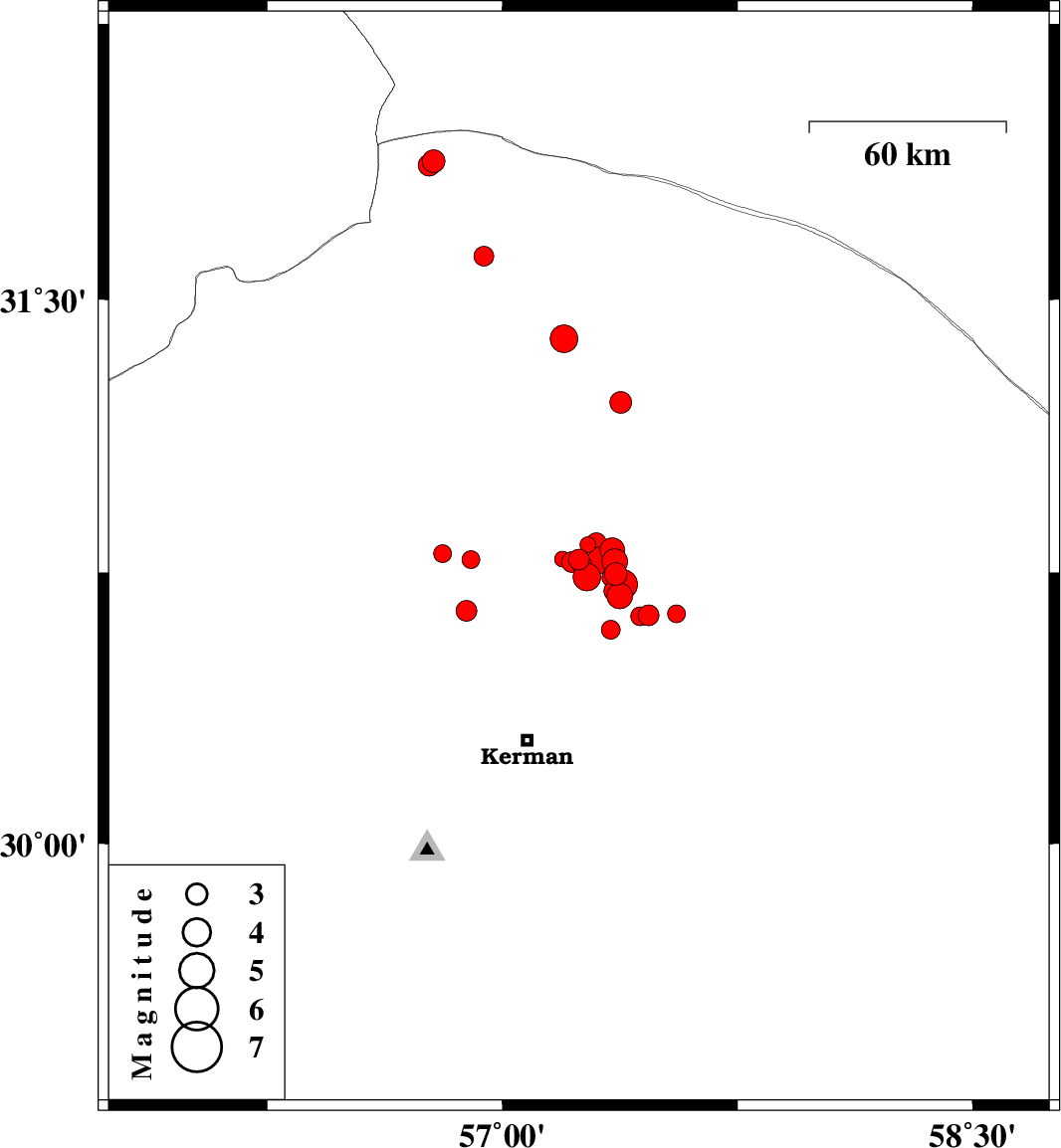 | 2018/04/03 | 16:04:47.7 | 20:34:47.7 | 30.758 | 57.351 | 14 | ML2.3 | Kerman Province, 58 km North-East of Kerman | ||