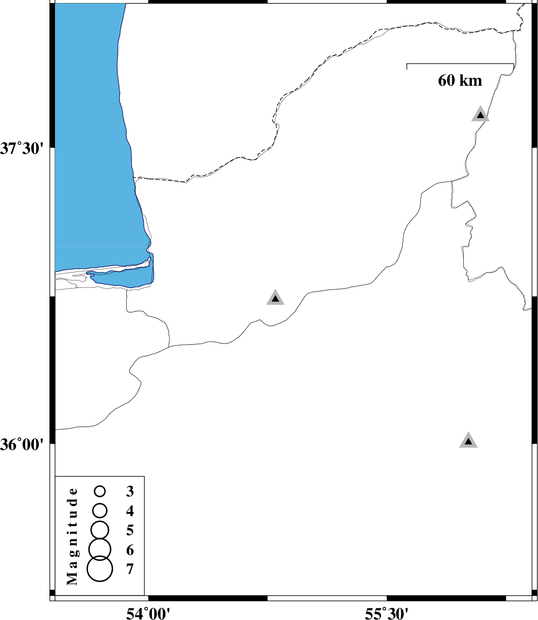 | 2018/04/18 | 20:57:36.9 | 01:27:36.9 | 36.72 | 54.913 | 17 | ML2.6 | Golestan Province, 21 km South of Ali Abad |