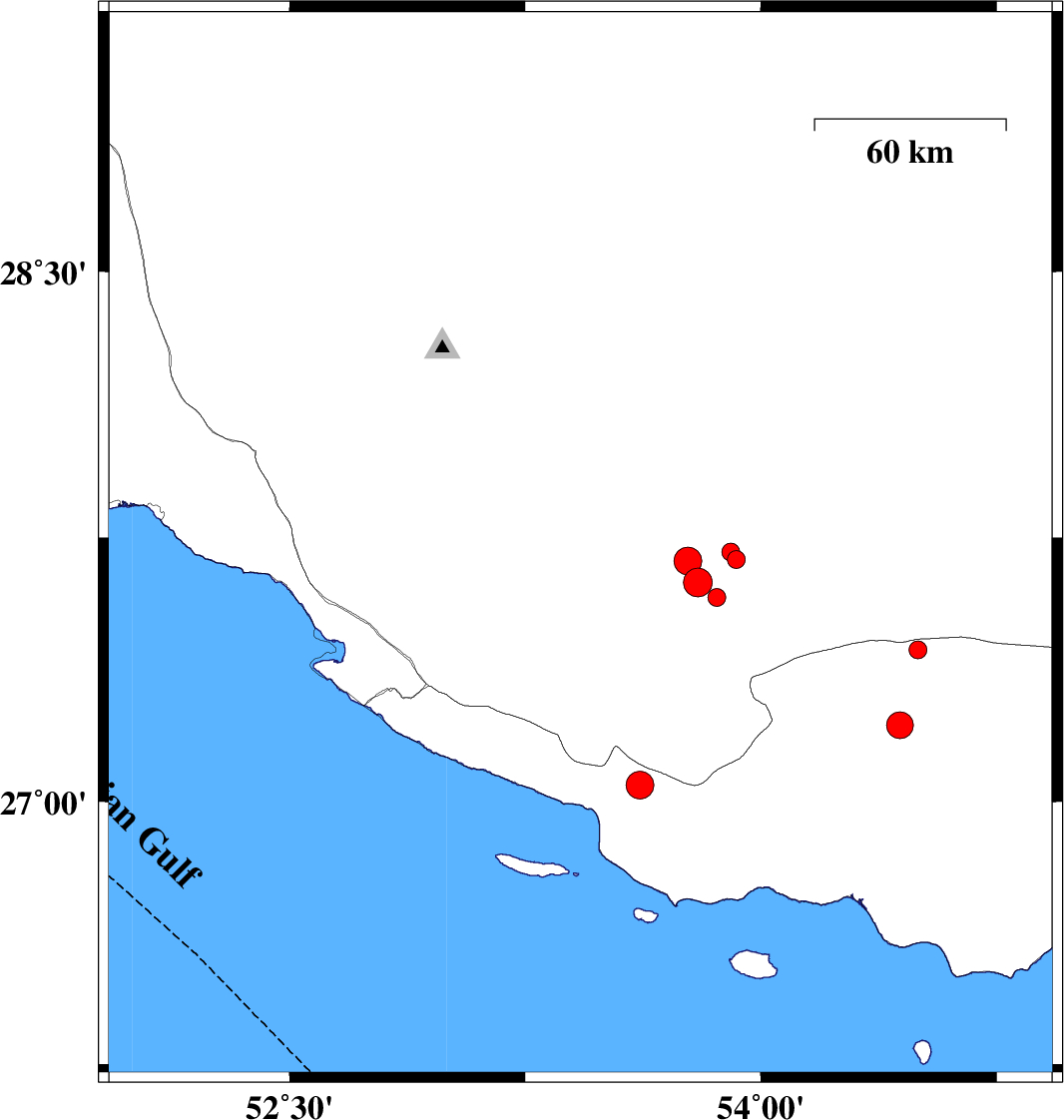 | 2018/04/19 | 04:05:18.2 | 08:35:18.2 | 26.721 | 53.955 | 15 | ML3.4 | , 67 km South-West of Bastak | ||