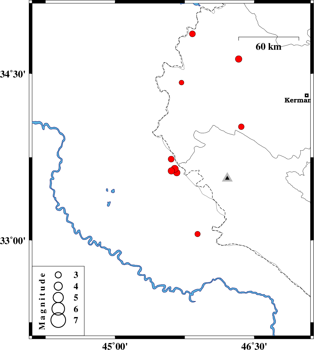 | 2018/04/15 | 14:49:16.7 | 19:19:16.7 | 34.025 | 46.361 | 14 | ML2.8 | Kermanshah Province, 23 km North of Eyvan |
