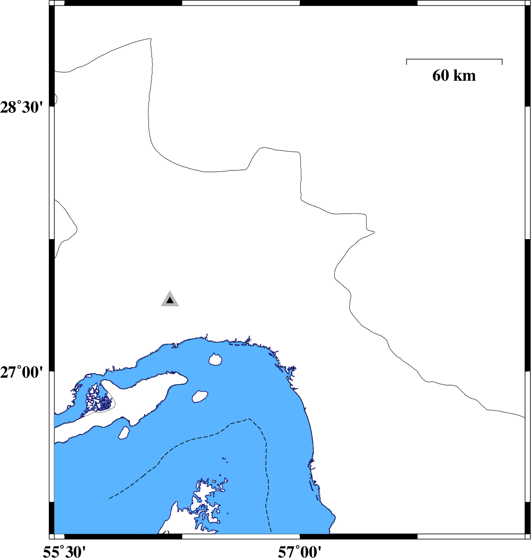 2018/04/21 | 03:02:05.0 | 07:32:05.0 | 27.567 | 56.935 | 14 | ML:2.8 | Hormozgan Province, 34 km North-West of Dehbarez | ||