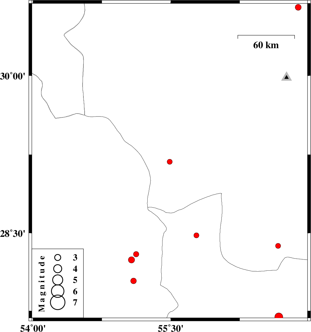 | 2018/04/08 | 05:30:01.1 | 10:00:01.1 | 28.241 | 55.072 | 14 | ML3.1 | Fars Province, 82 km -West of Hajiabad | ||