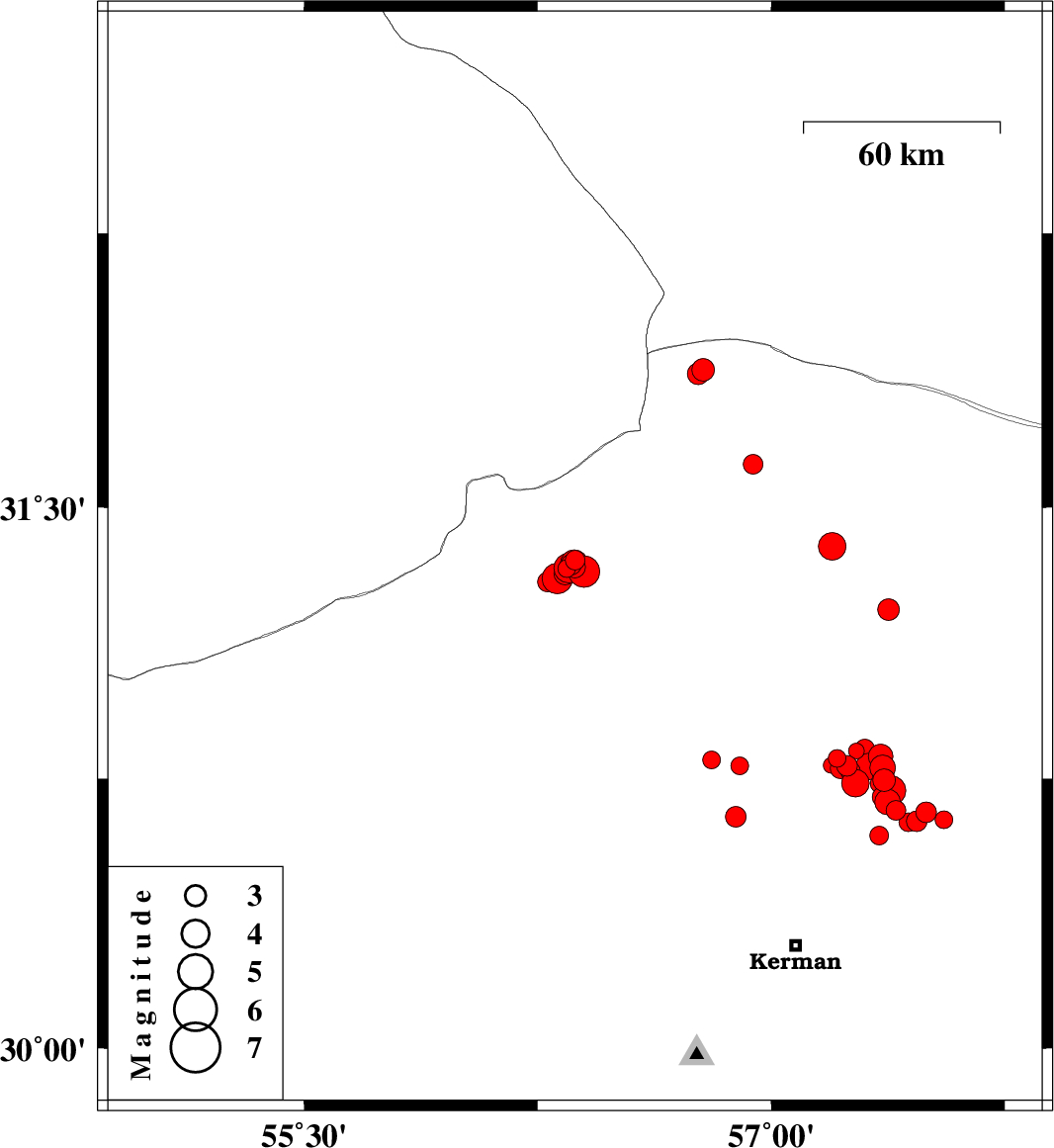 | 2018/04/19 | 05:45:23.9 | 10:15:23.9 | 30.786 | 57.244 | 14 | ML2.9 | Kerman Province, 58 km North-East of Kerman | ||
