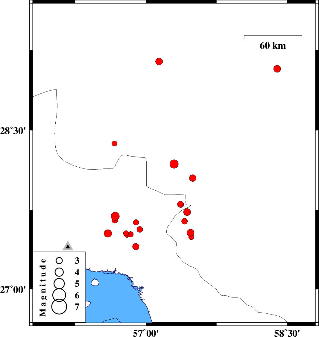 | 2018/03/26 | 03:21:01.8 | 07:51:01.8 | 29.074 | 58.393 | 14 | ML3.4 | Kerman Province, 5 km of Bam |