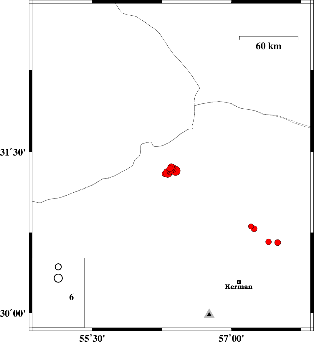 2018/04/19 05:45:23.9 10:15:23.9 30.78657.24414 ML2.9 Kerman Province, 58 km North-East of Kerman