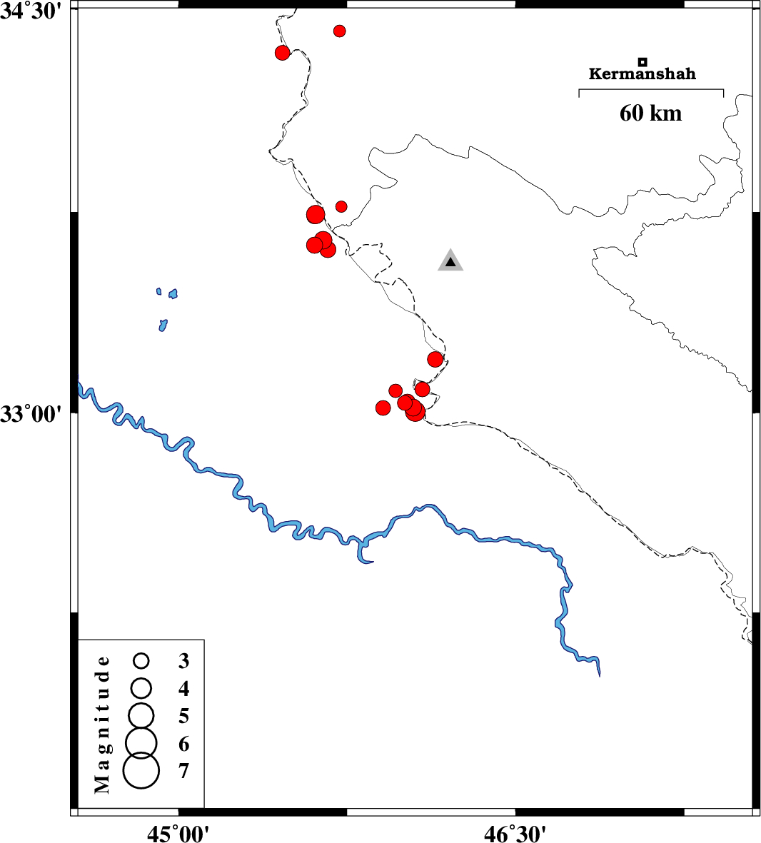 | 2018/04/27 | 03:04:31.4 | 07:34:31.4 | 34.34 | 45.462 | 14 | ML3 | Iraq, 23 km South-West of Qasr-E-Shirin | ||