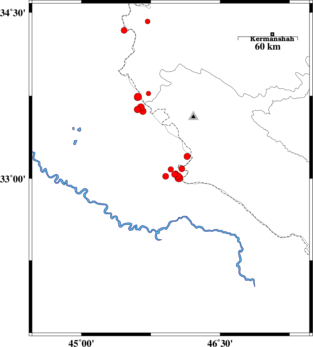 | 2018/04/28 | 01:13:21.0 | 05:43:21.0 | 33.006 | 46.053 | 14 | ML4 | Iraq, 16 km South-West of Mehran | ||