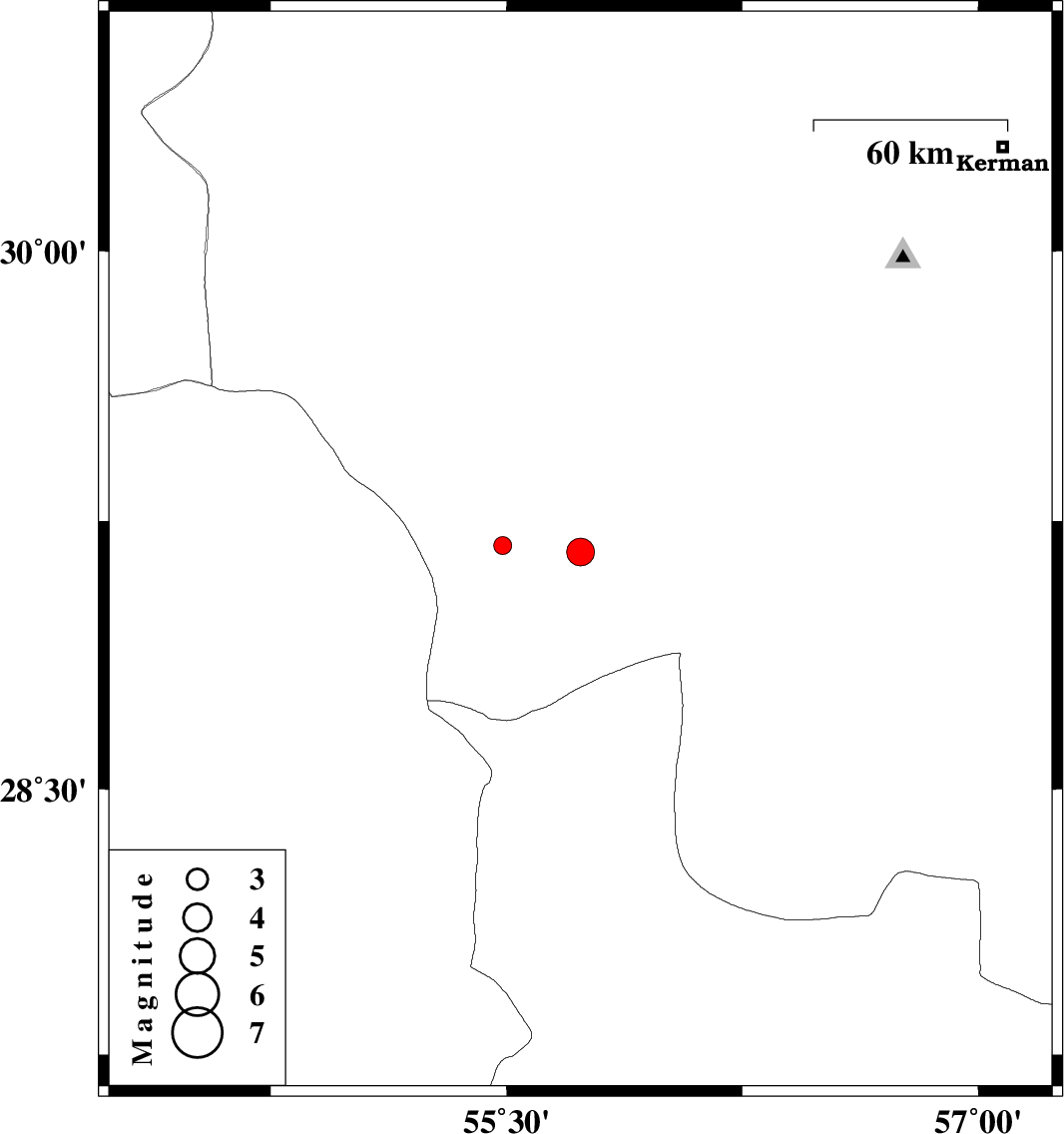 | 2018/04/20 | 10:46:33.2 | 15:16:33.2 | 29.182 | 55.488 | 14 | ML2.5 | Kerman Province, 34 km South-West of Sirjan |