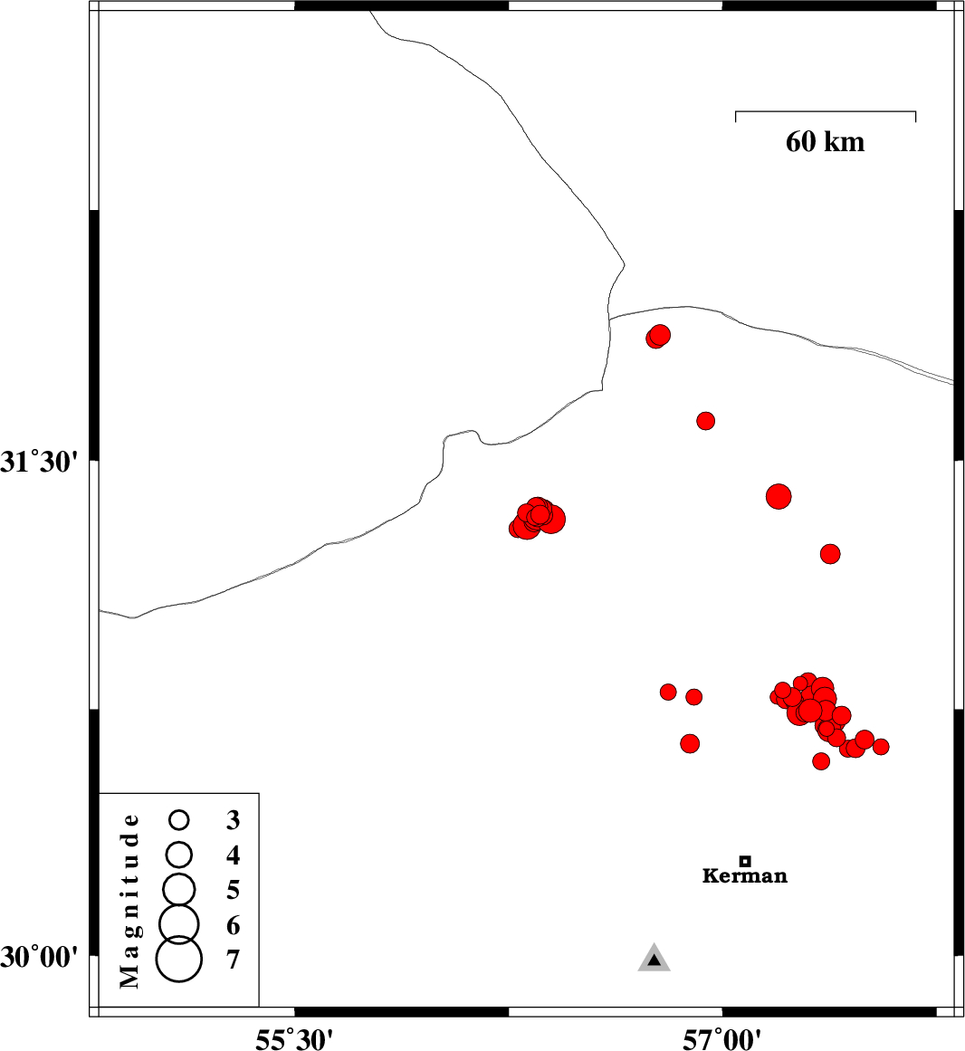 | 2018/04/19 | 05:45:23.9 | 10:15:23.9 | 30.786 | 57.244 | 14 | ML2.9 | Kerman Province, 58 km North-East of Kerman | ||