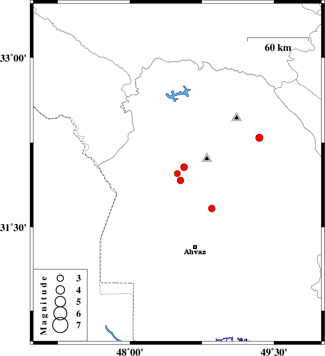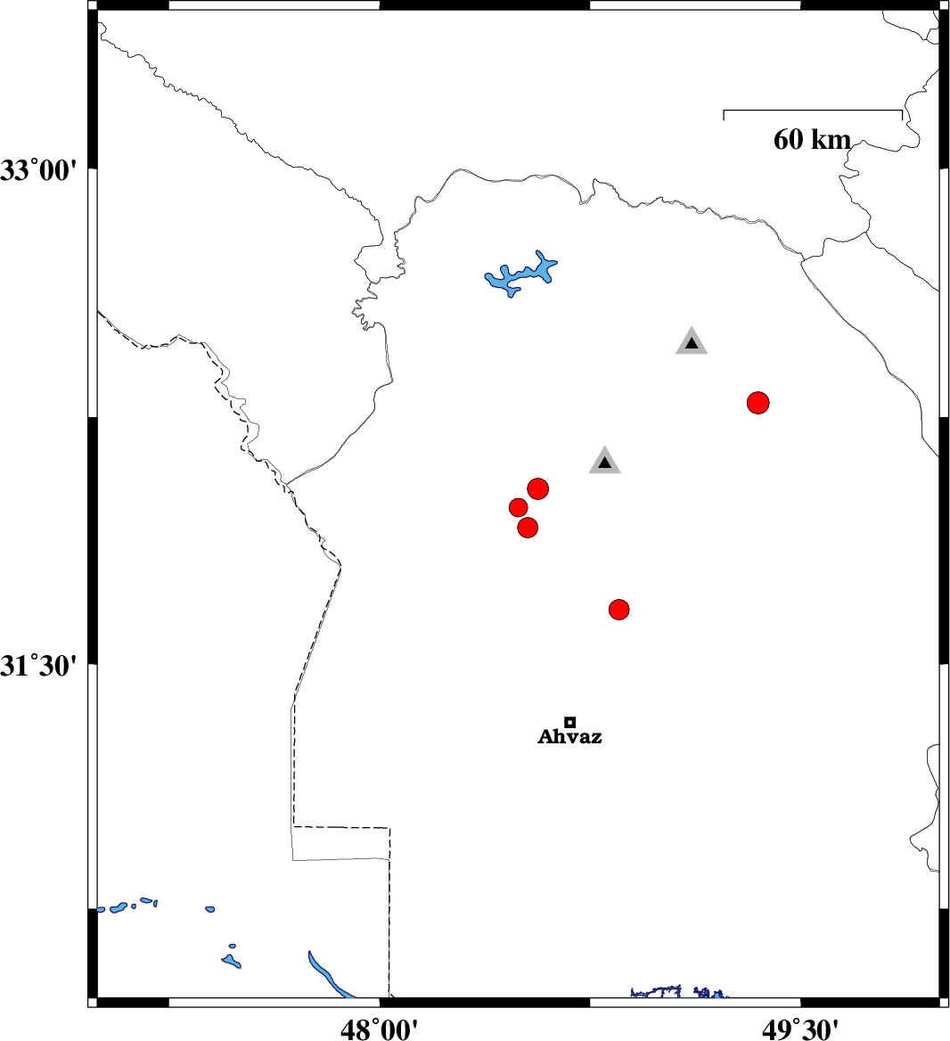 | 2018/04/20 | 06:02:11.5 | 10:32:11.5 | 31.665 | 48.853 | 15 | ML3.2 | Khoozestan Province, 42 km South of Shushtar | ||