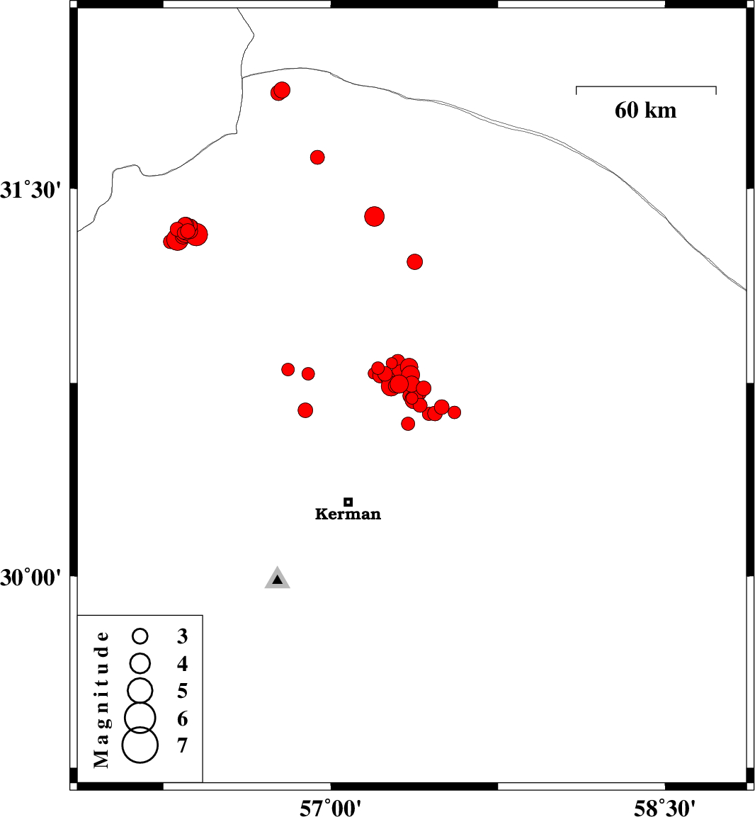 | 2018/04/19 | 05:45:23.9 | 10:15:23.9 | 30.786 | 57.244 | 14 | ML2.9 | Kerman Province, 58 km North-East of Kerman | ||