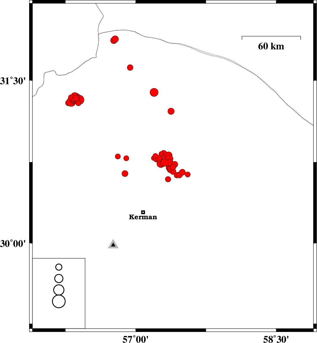 | 2018/04/04 | 22:12:39.1 | 02:42:39.1 | 30.7 | 57.357 | 14 | ML3 | Kerman Province, 53 km North-East of Kerman | ||