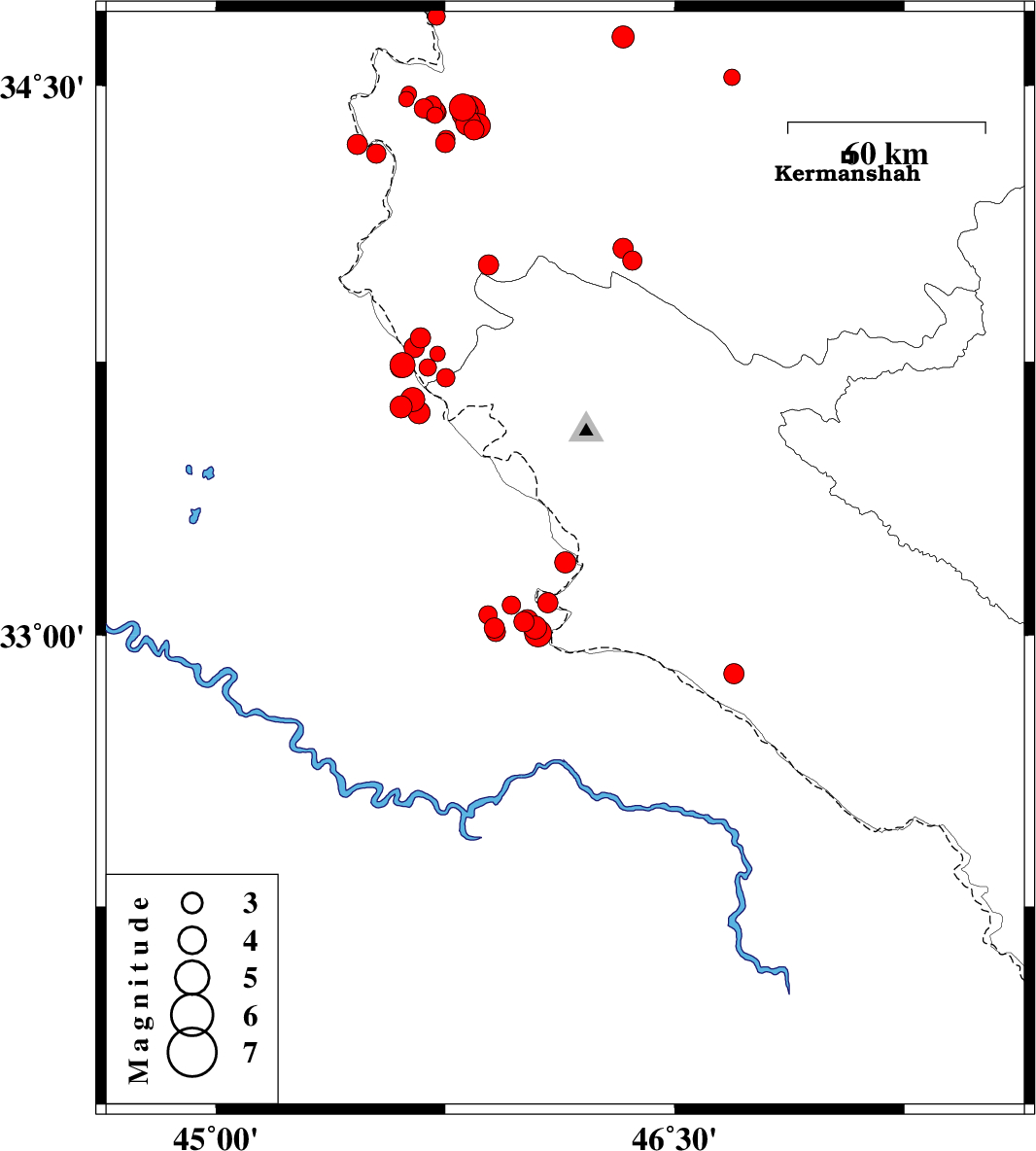 | 2018/04/27 | 03:04:31.4 | 07:34:31.4 | 34.34 | 45.462 | 14 | ML3 | Iraq, 23 km South-West of Qasr-E-Shirin | ||