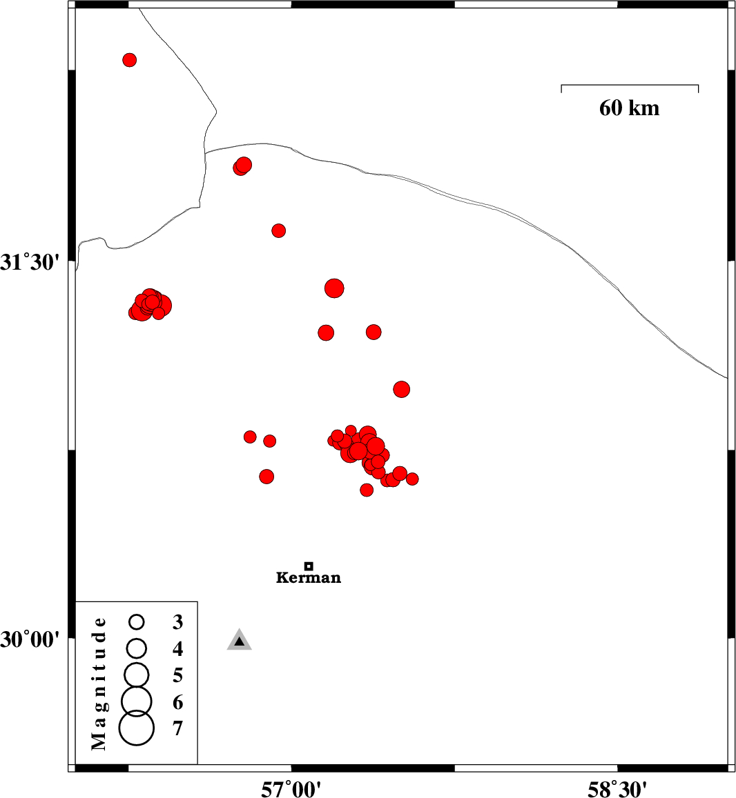 | 2018/04/04 | 22:12:39.1 | 02:42:39.1 | 30.7 | 57.357 | 14 | ML3 | Kerman Province, 53 km North-East of Kerman | ||